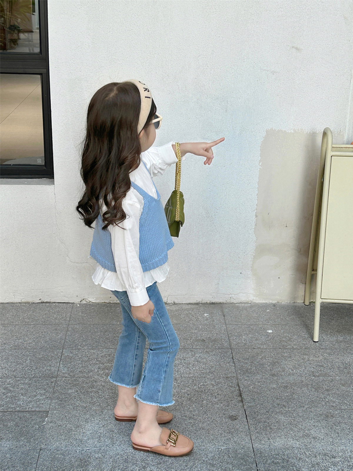 2024 봄 아동복 새 소녀 양모 조끼 캐미솔 서양식 아기 소녀 니트 민소매 탑스토어 가기