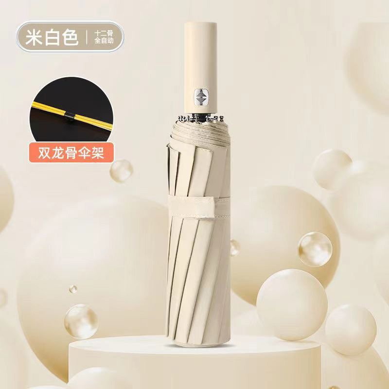 12 뼈 검은 고무 완전 자동 접히는 우산 이중 목적 햇살과 UV 보호 태양 우산 인쇄 가능한 로고 만들기