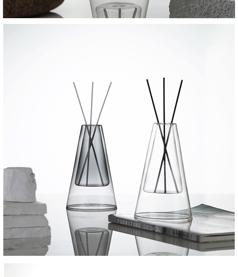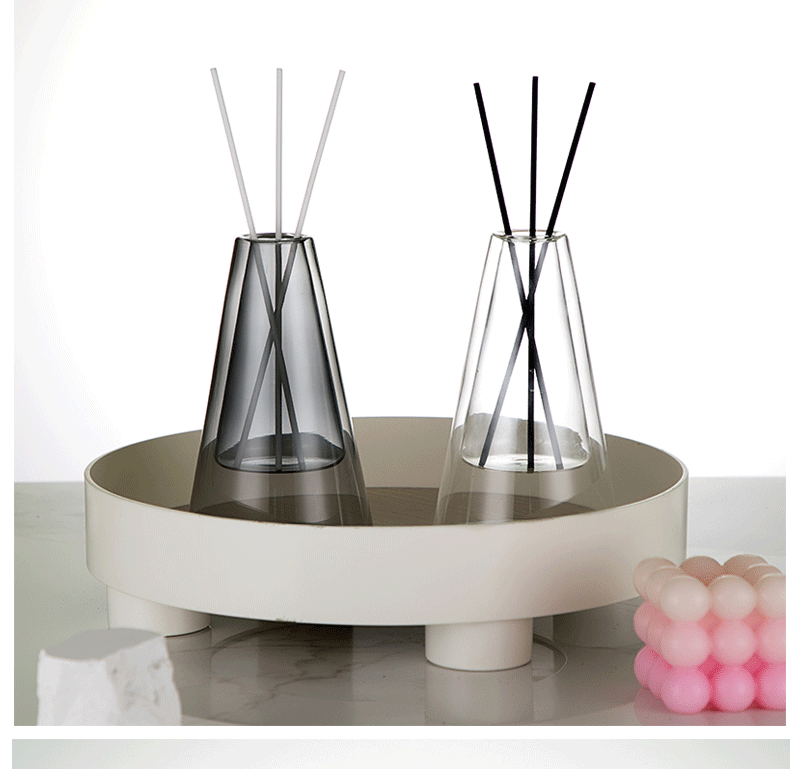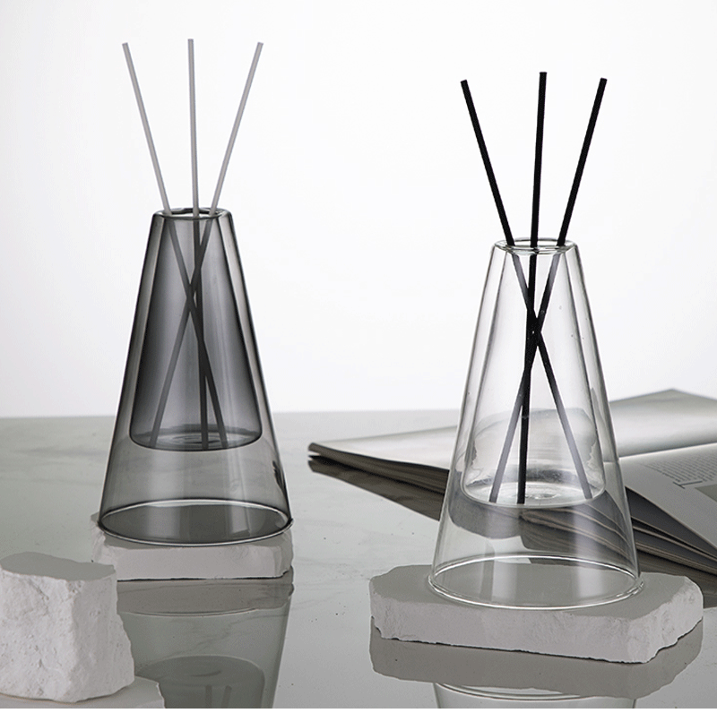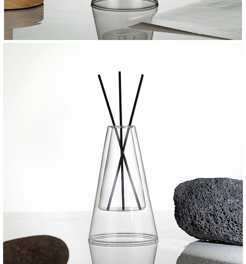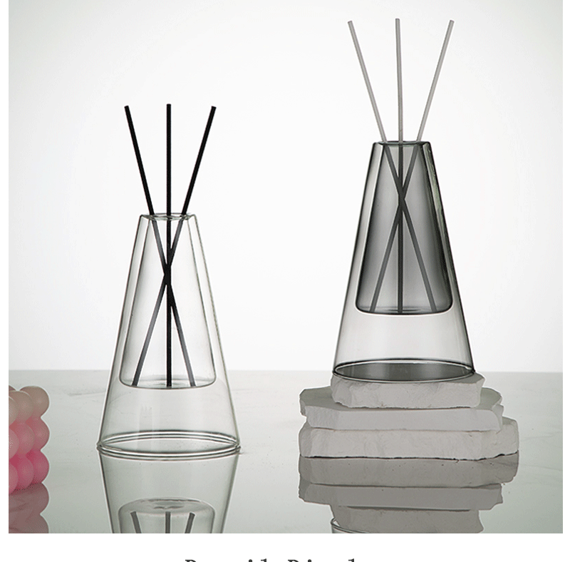 간단한 더블 삼각형 더블 레이어 유리 아로마 테라피 병 가정용 거실 침실 휘발성 등나무 꽃 장식 빈 병
