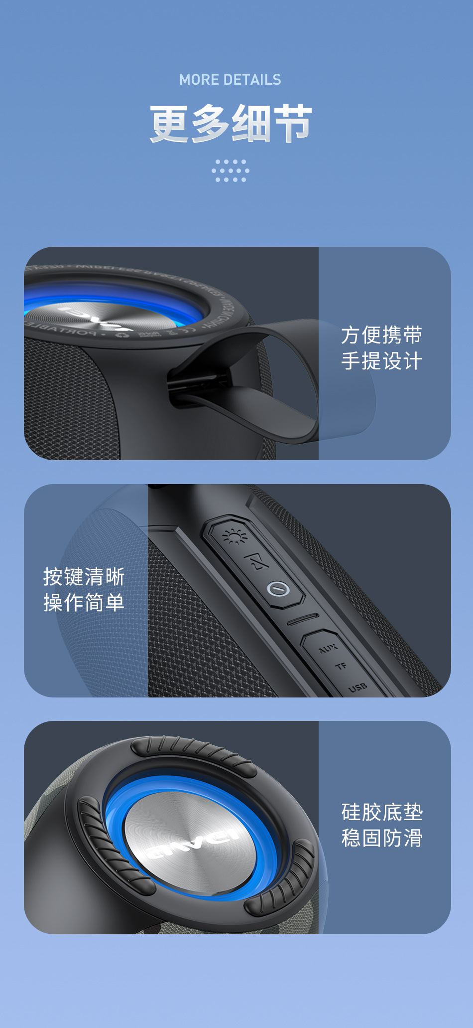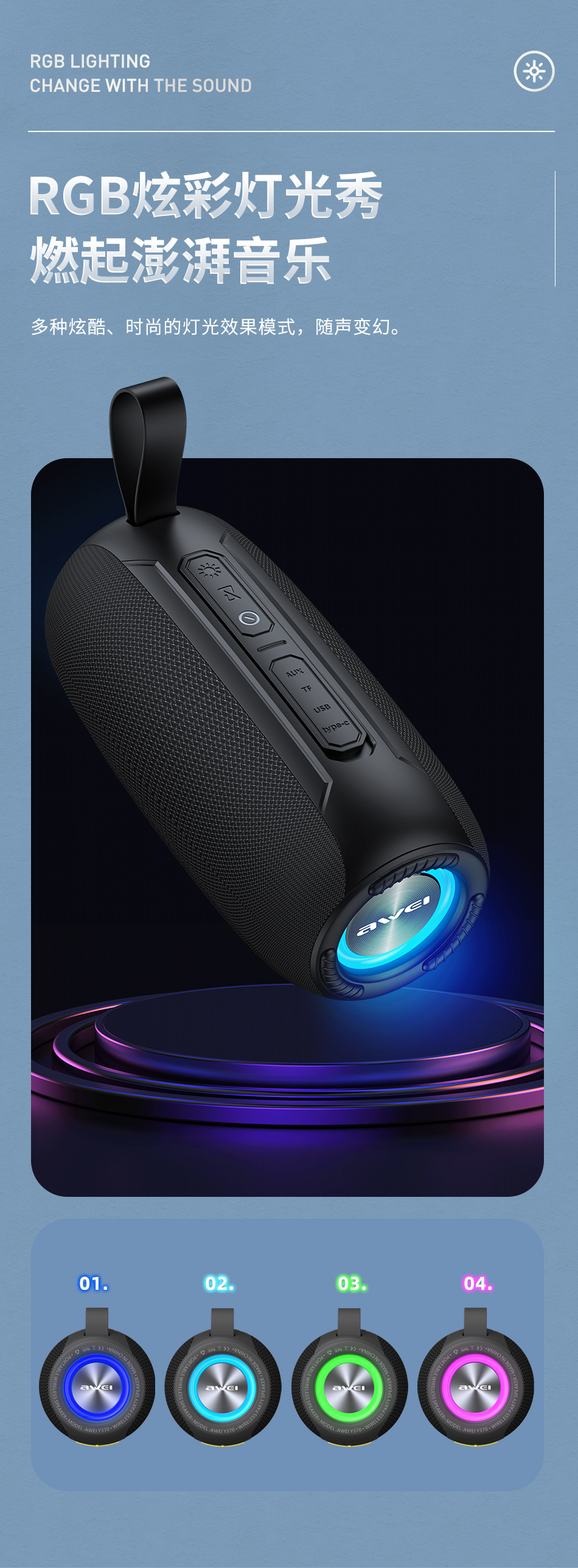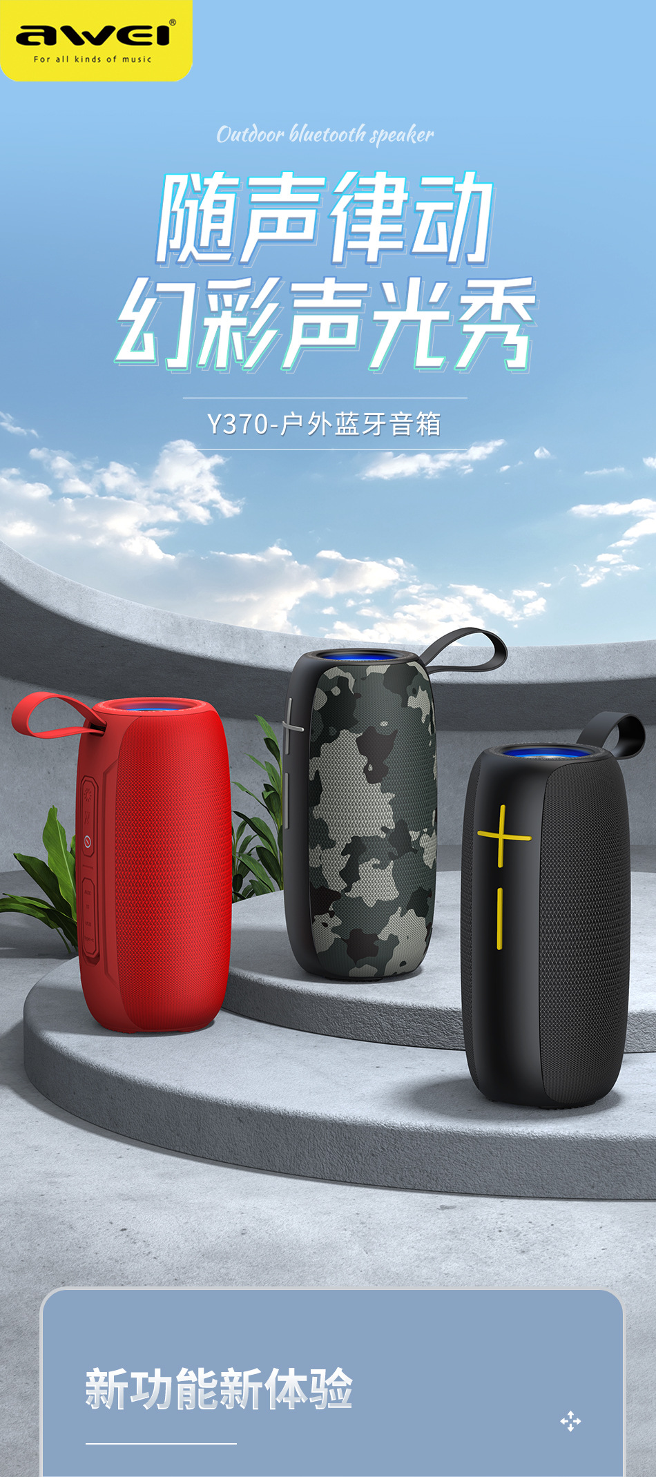 AWEI Y370 야외 동적 조명 블루투스 오디오 휴대용 지원 U 디스크 재생 TWS 상호 연결된 스피커