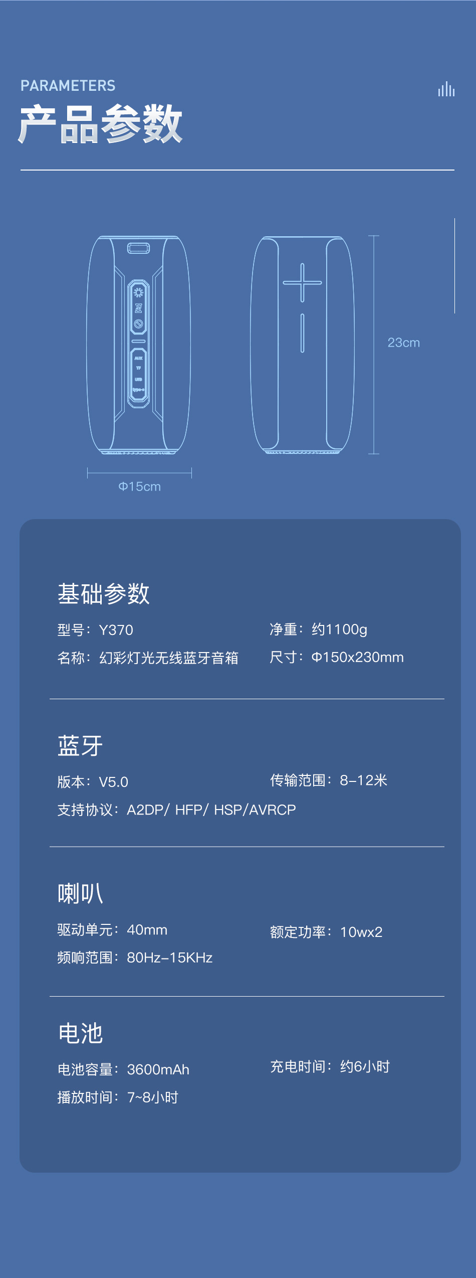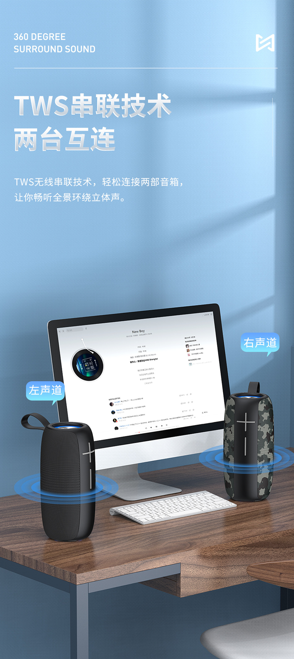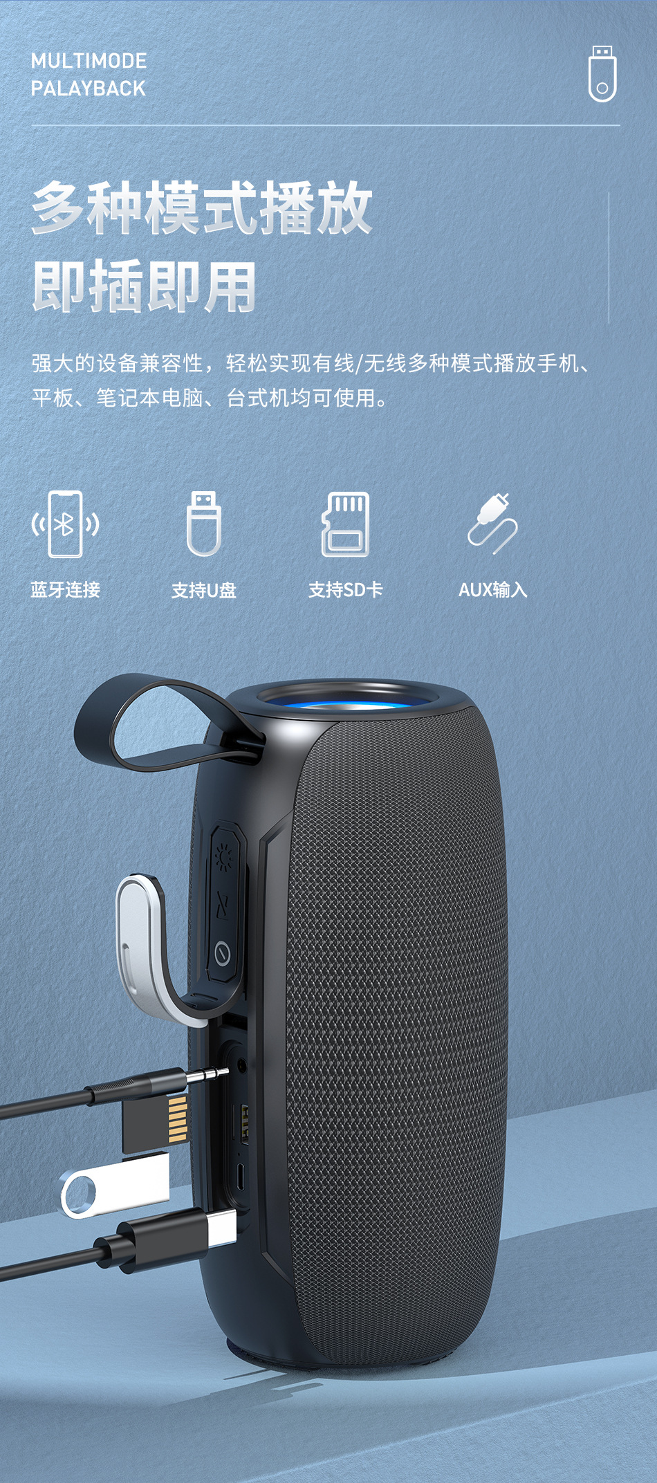 AWEI Y370 야외 동적 조명 블루투스 오디오 휴대용 지원 U 디스크 재생 TWS 상호 연결된 스피커