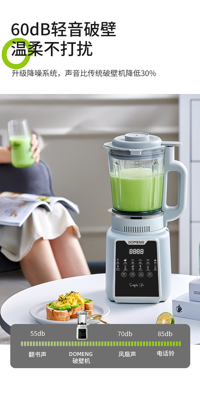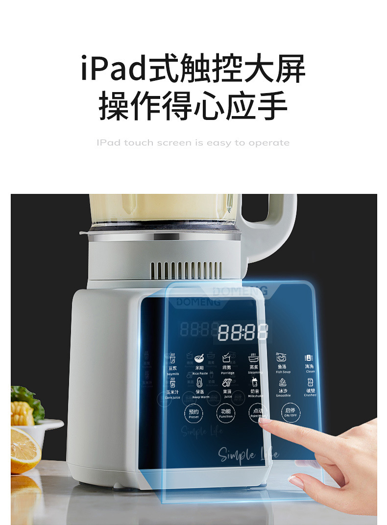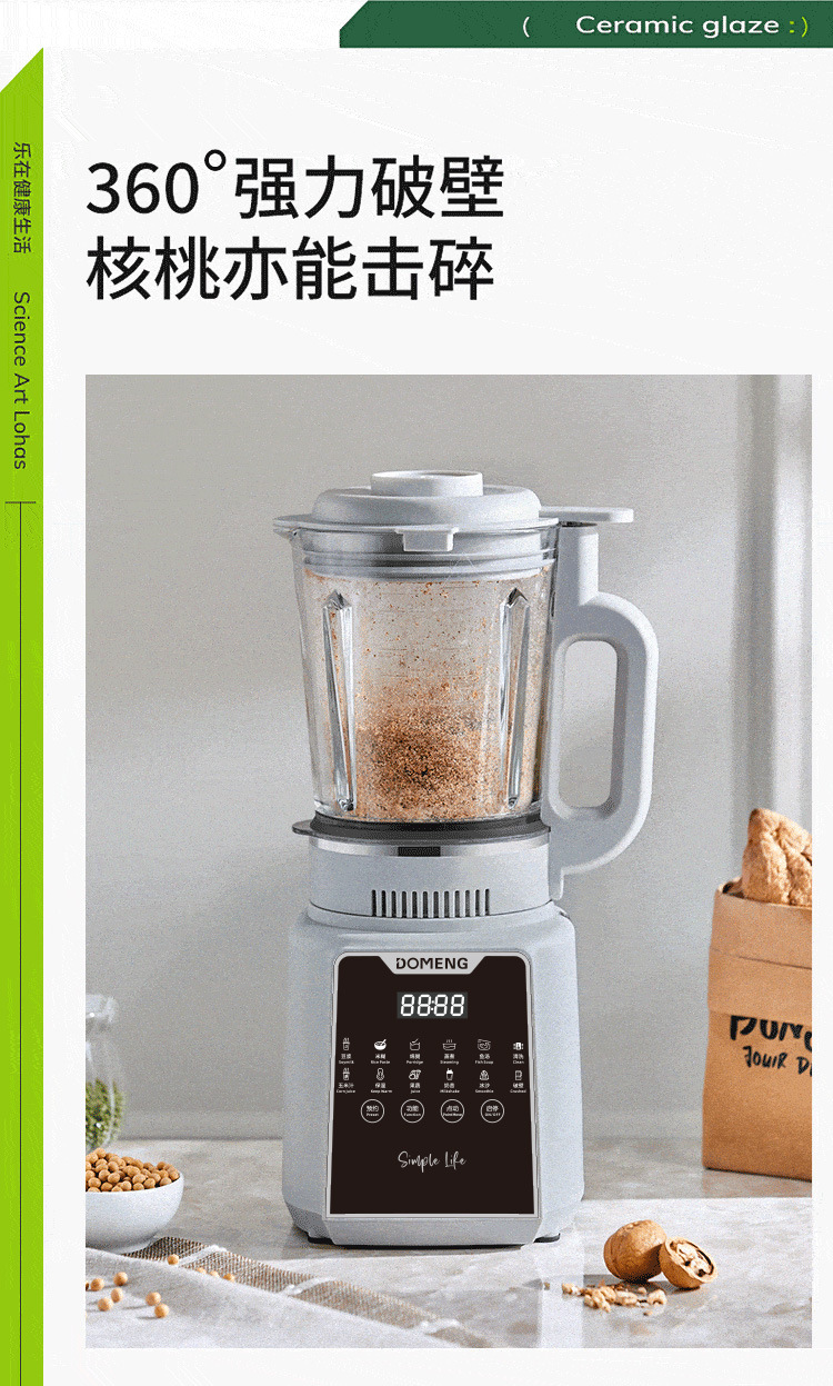 Domon 가열 벽 파괴 기계 가정용 자동 지능형 다기능 예약 두유 식품 보충 기계 완전 자동 혼합 및 주스 추출기