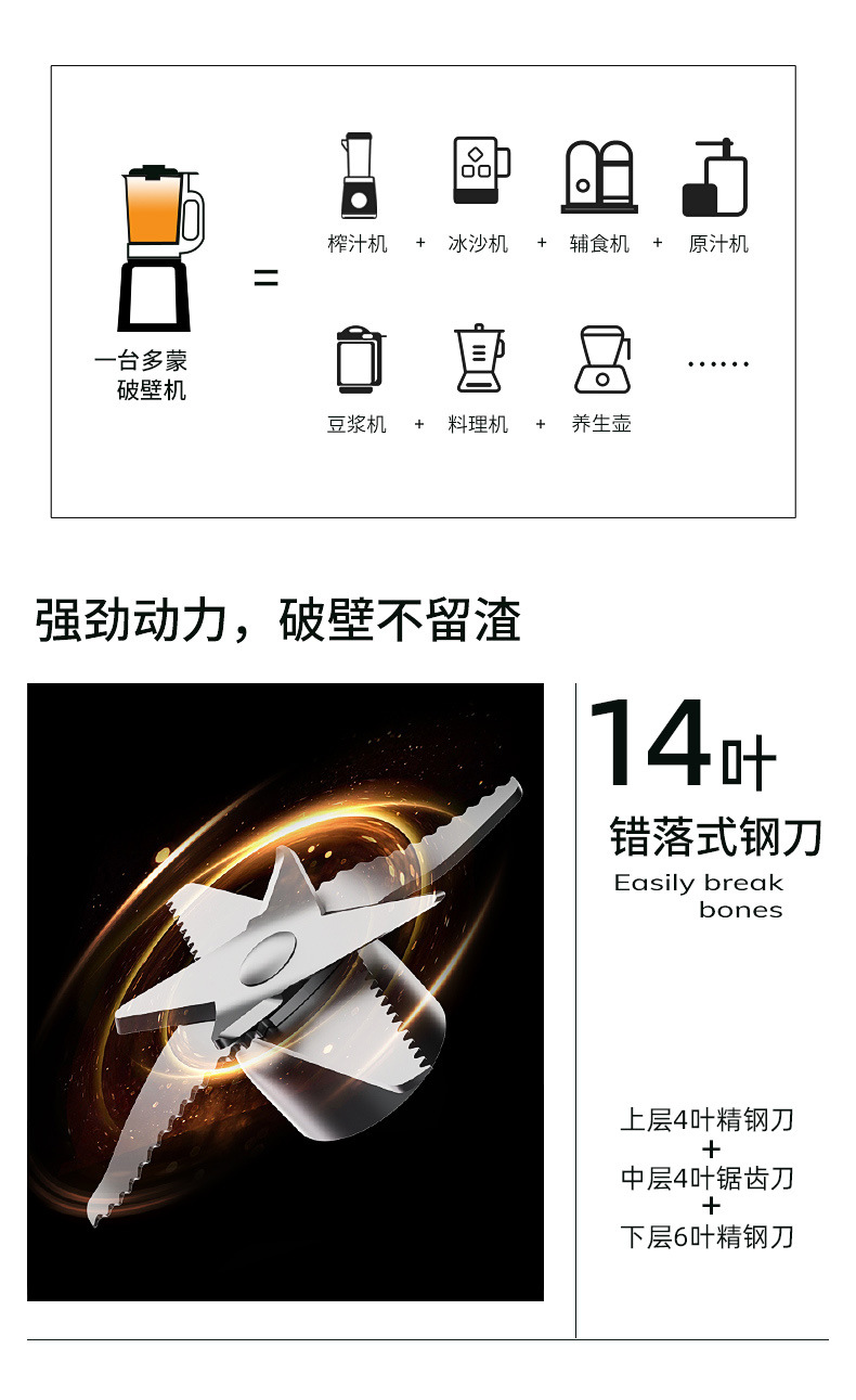 • 20날 스테인리스 스틸 칼날 (두유, 쌀가루, 과일 주스를 곱게 갈아 고기 다지기 및 분쇄 가능)