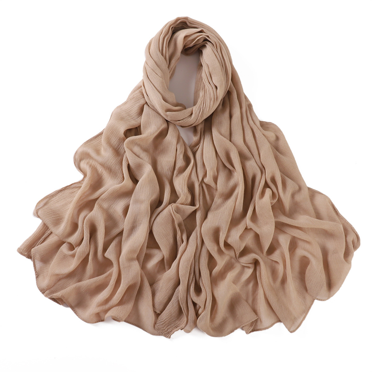 新款人棉褶皱卷边长巾