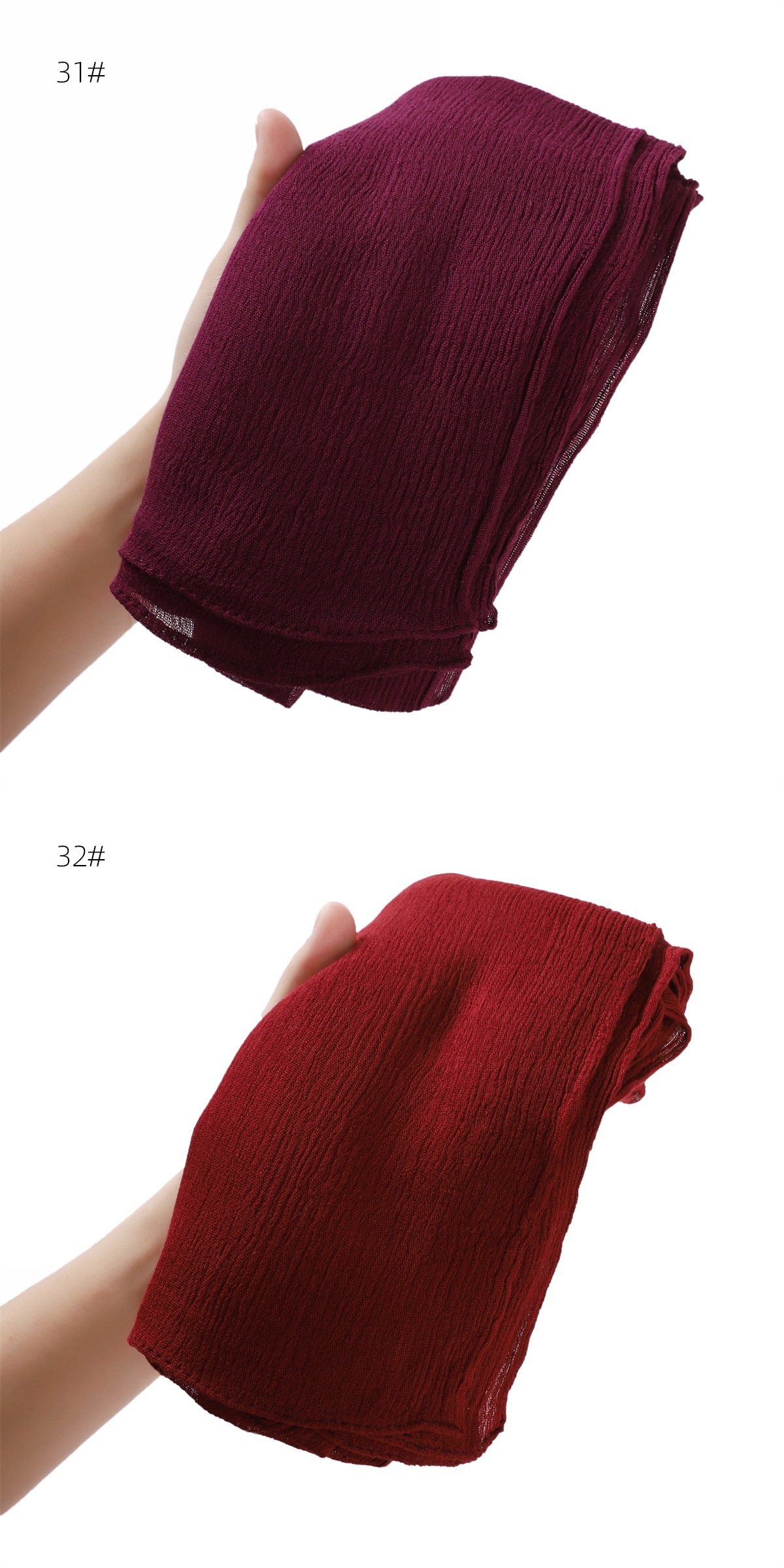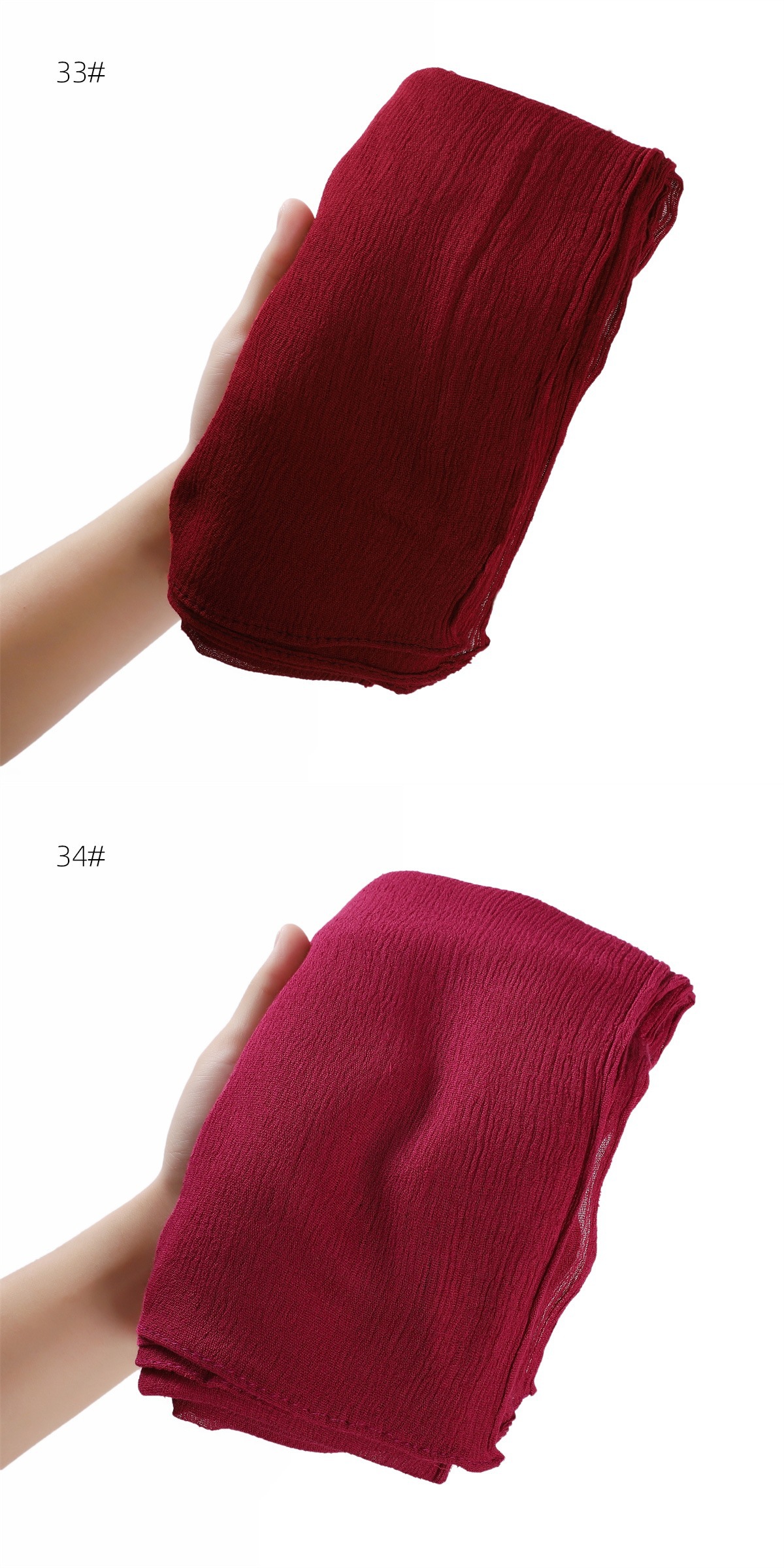 국경 간 단색 투헤드 컬 러플 레이온 얇은 주름 스카프 얇은 통기성 부드러운 터번 목도리 100% 레이온스토어 가기