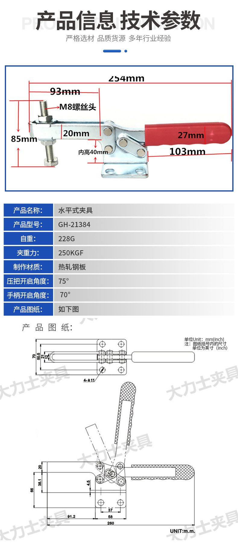헤라클레스 퀵 클램프 GH-21384-WDC 공작물 고정 퀵 클램프 하드웨어 퀵 클램프 도매