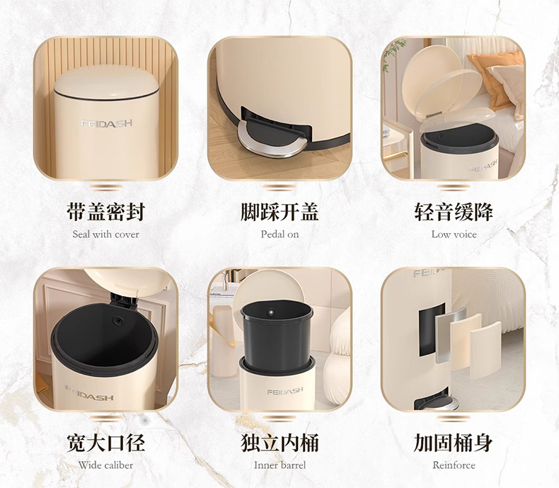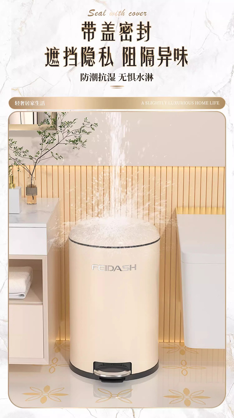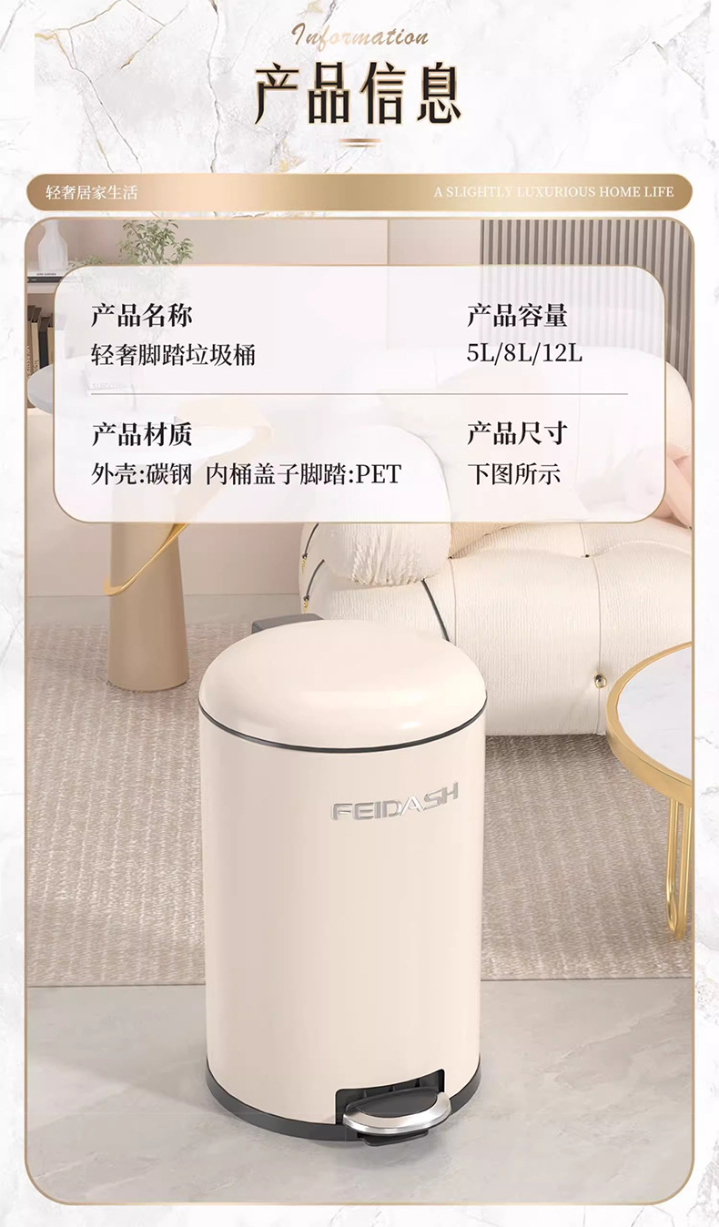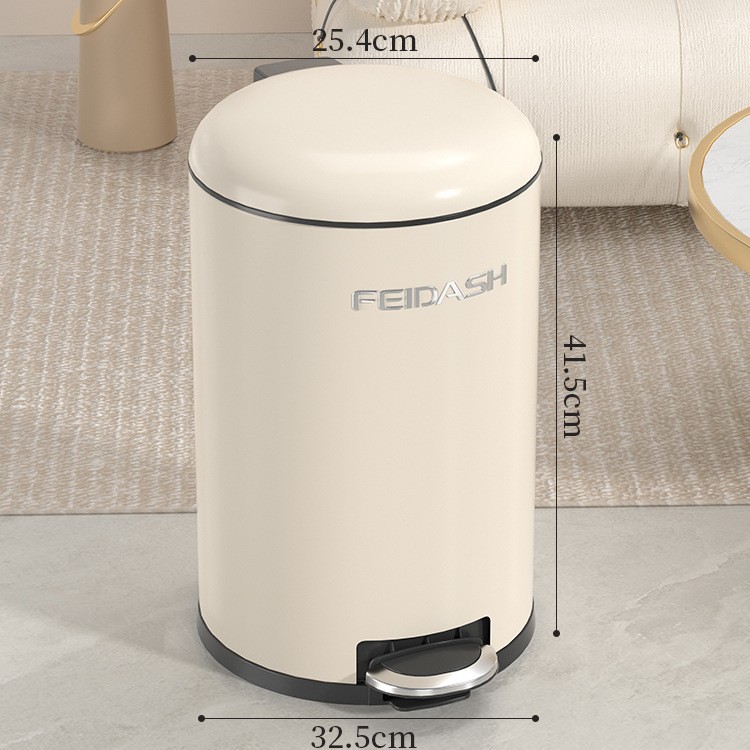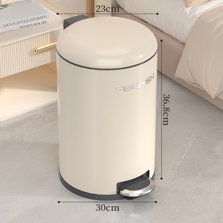 Shuangyi 쓰레기통, 가벼운 고급 크림 스타일 스테인레스 스틸 쓰레기통, 뚜껑이 있는 가정용 발로 작동하는 거실 및 주방 쓰레기통
