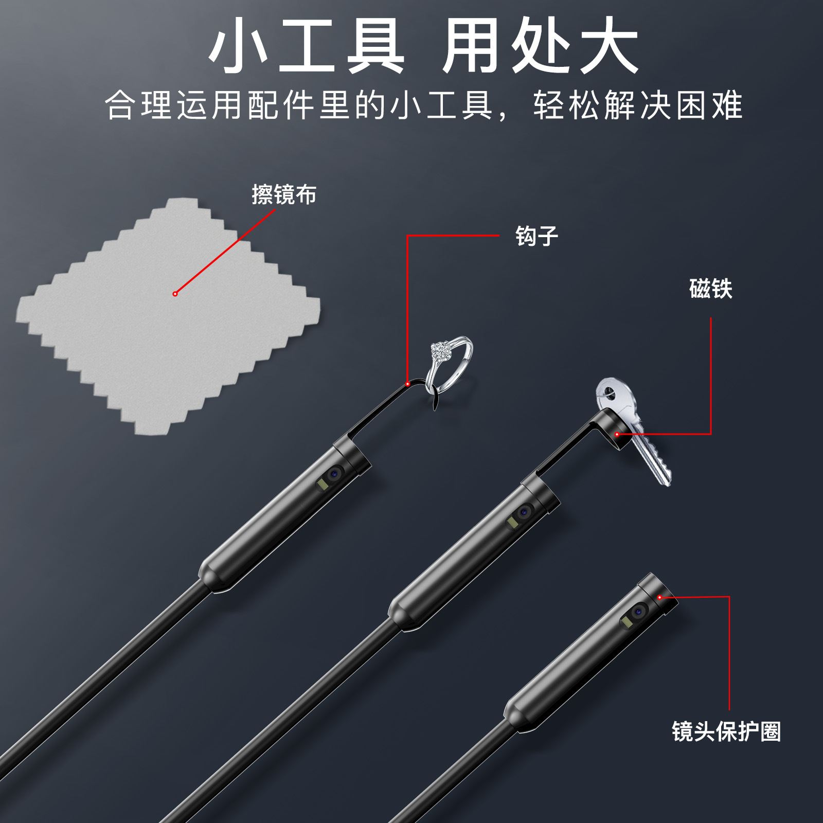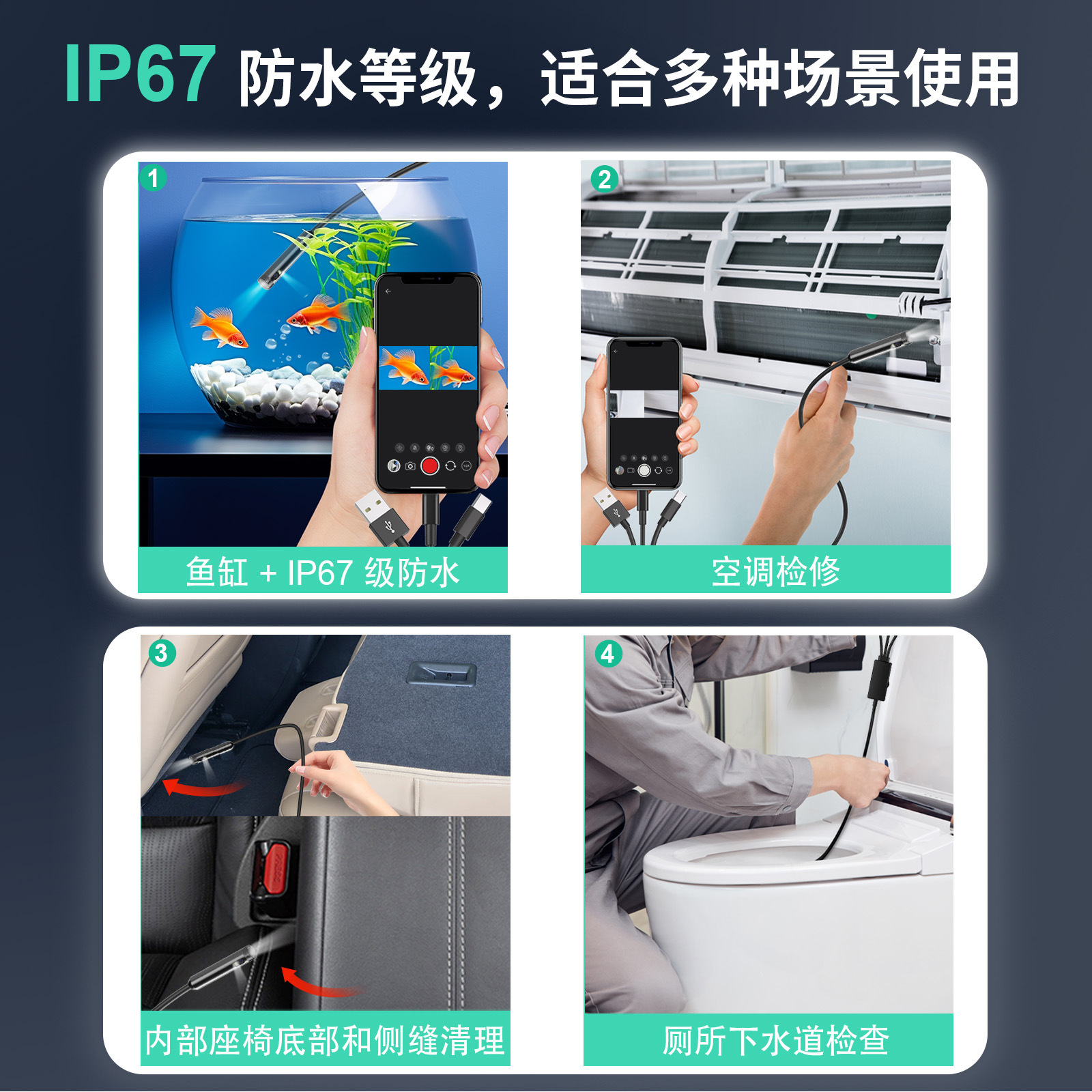신제품 3-in-1 듀얼 렌즈 산업용 내시경은 애플, 안드로이드, 컴퓨터를 지원하며, 파이프 수리용 카메라로 광각을 제공합니다.