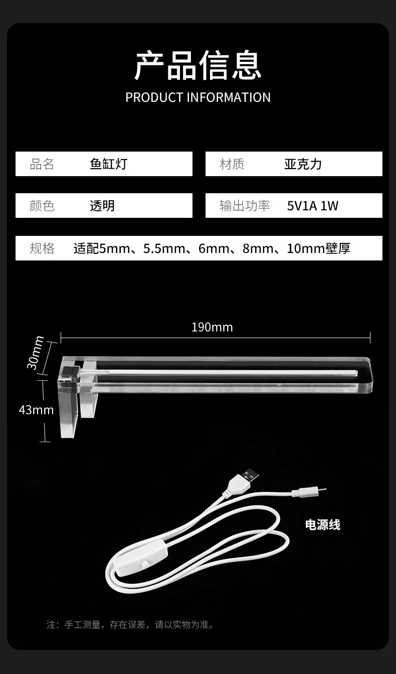 간단한 물고기 탱크 빛 led 클립 빛 작은 아크릴 usb1w 에너지 절약 조명 스플래시 방지 물 하이라이트 수족관 램프