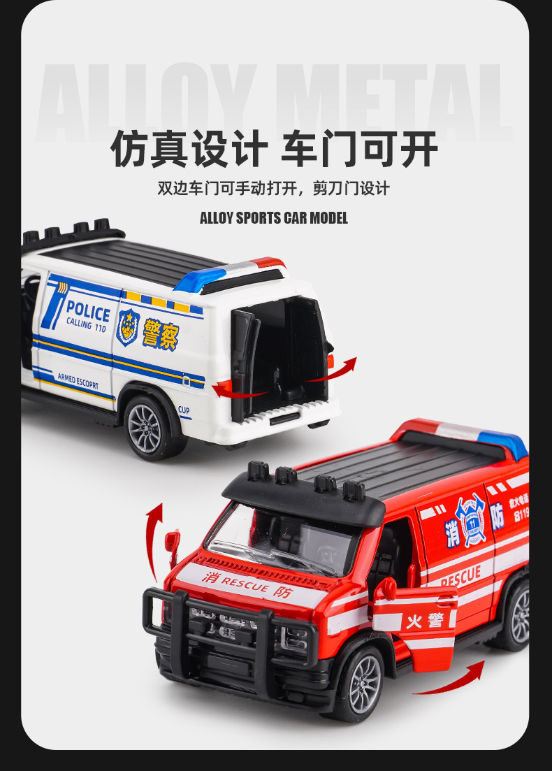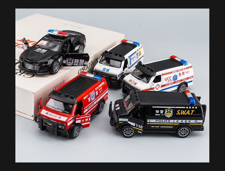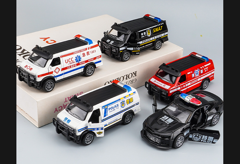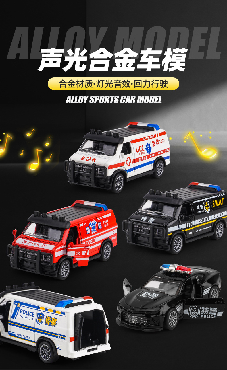 어린이 장난감 소년 퍼즐 시뮬레이션 경찰차 모델 합금 자동차 모델 구급차 아기 3-6 세 1 전기 장난감 자동차