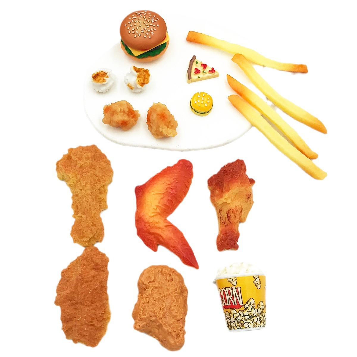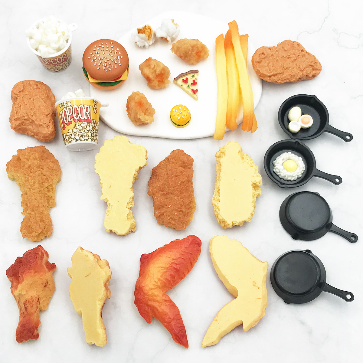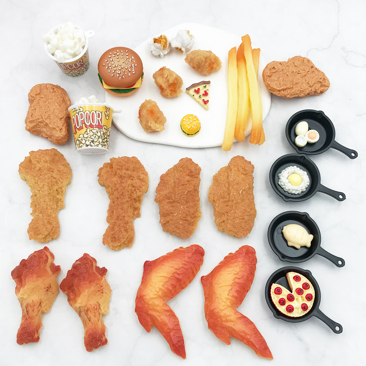 시뮬레이션 음식과 플레이 프라이드 치킨 햄버거 액세서리 DIY 수지 재미 재미있는 헤어 액세서리 치킨 블록 팝콘 액세서리스토어 가기
