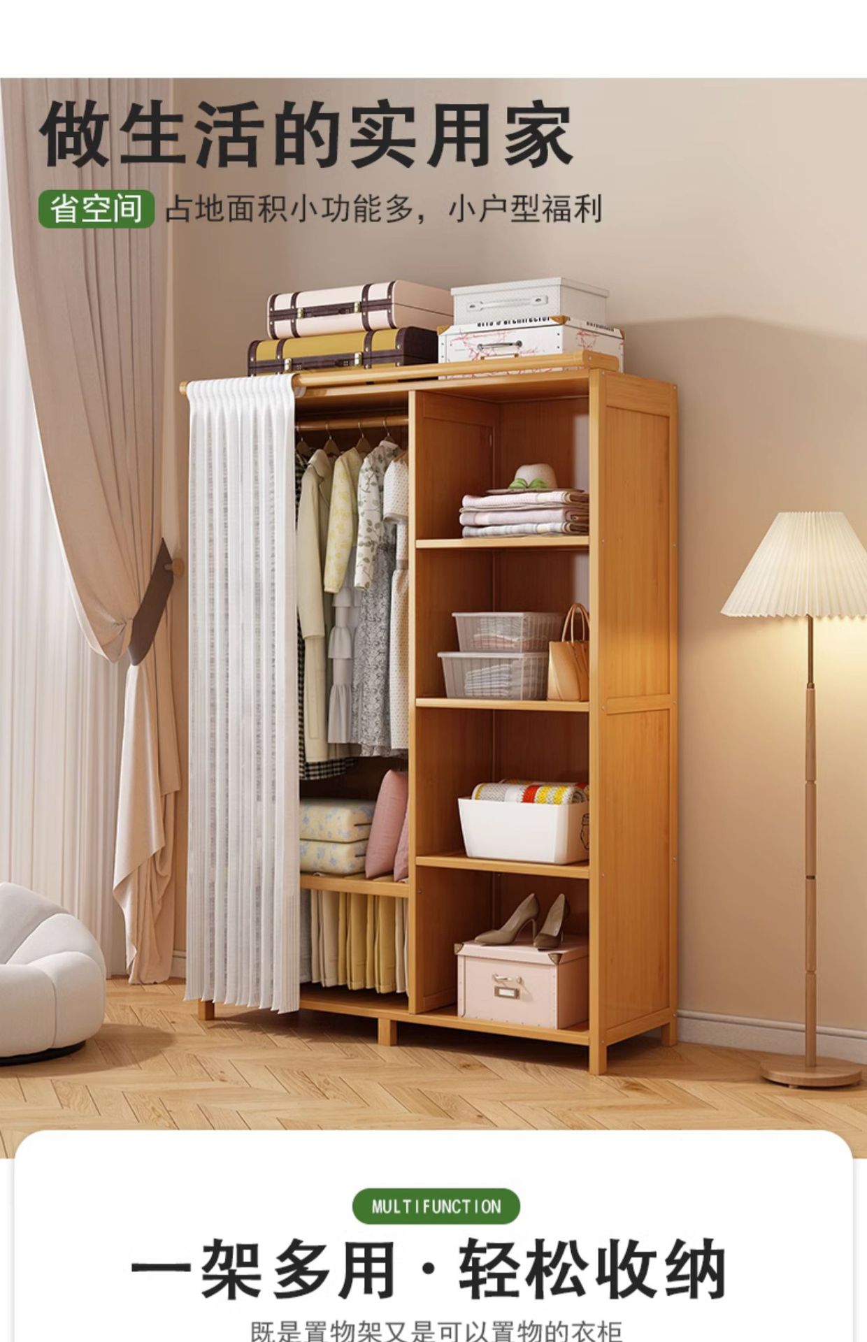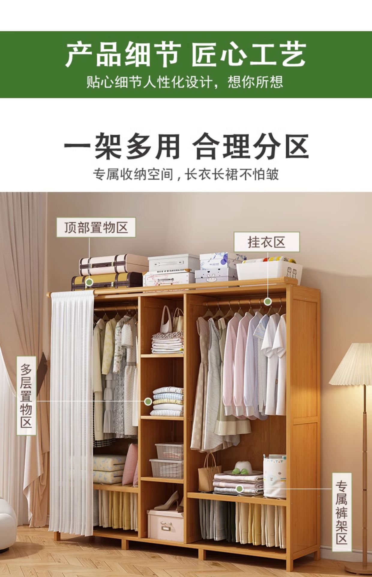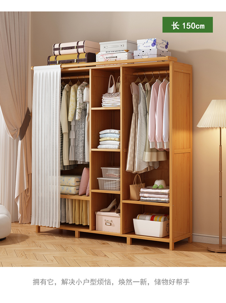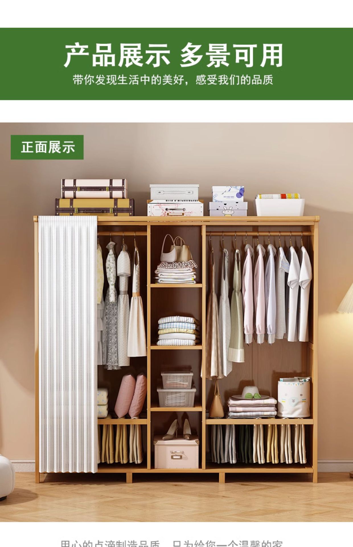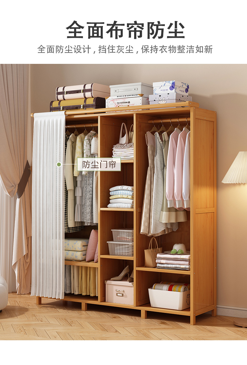 단단한 나무 옷장 간단한 조립 보관 옷장 경제적 인 임대 룸 가정용 캐비닛 침실 방진 옷장스토어 가기