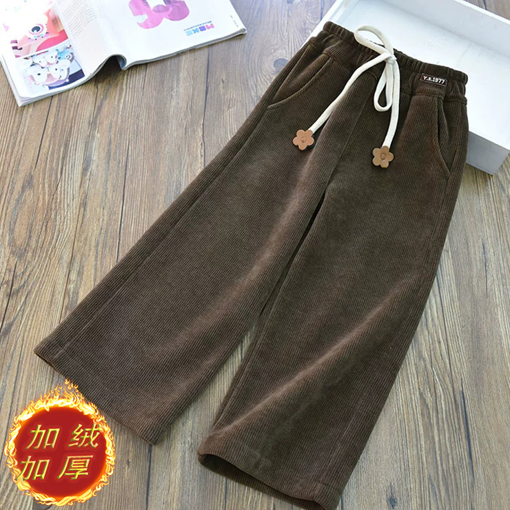 소녀 기모 두꺼운 넓은 다리 바지 따뜻한 중간 및 큰 어린이 느슨한 스트레이트 바지 가을과 겨울 어린이 서양식 캐주얼 바지