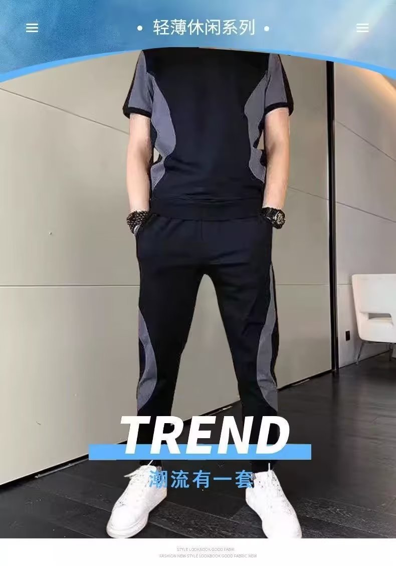 캐주얼 세트 남성 여름 반팔 티셔츠 남성 의류 세트 잘 생긴 패션 브랜드 스포츠 의류스토어 가기