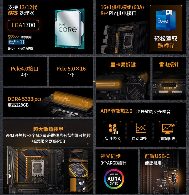 인텔 ASUS TUF GAMING Z790-PLUS WIFI D4 지원 13/12 세대 CPU
