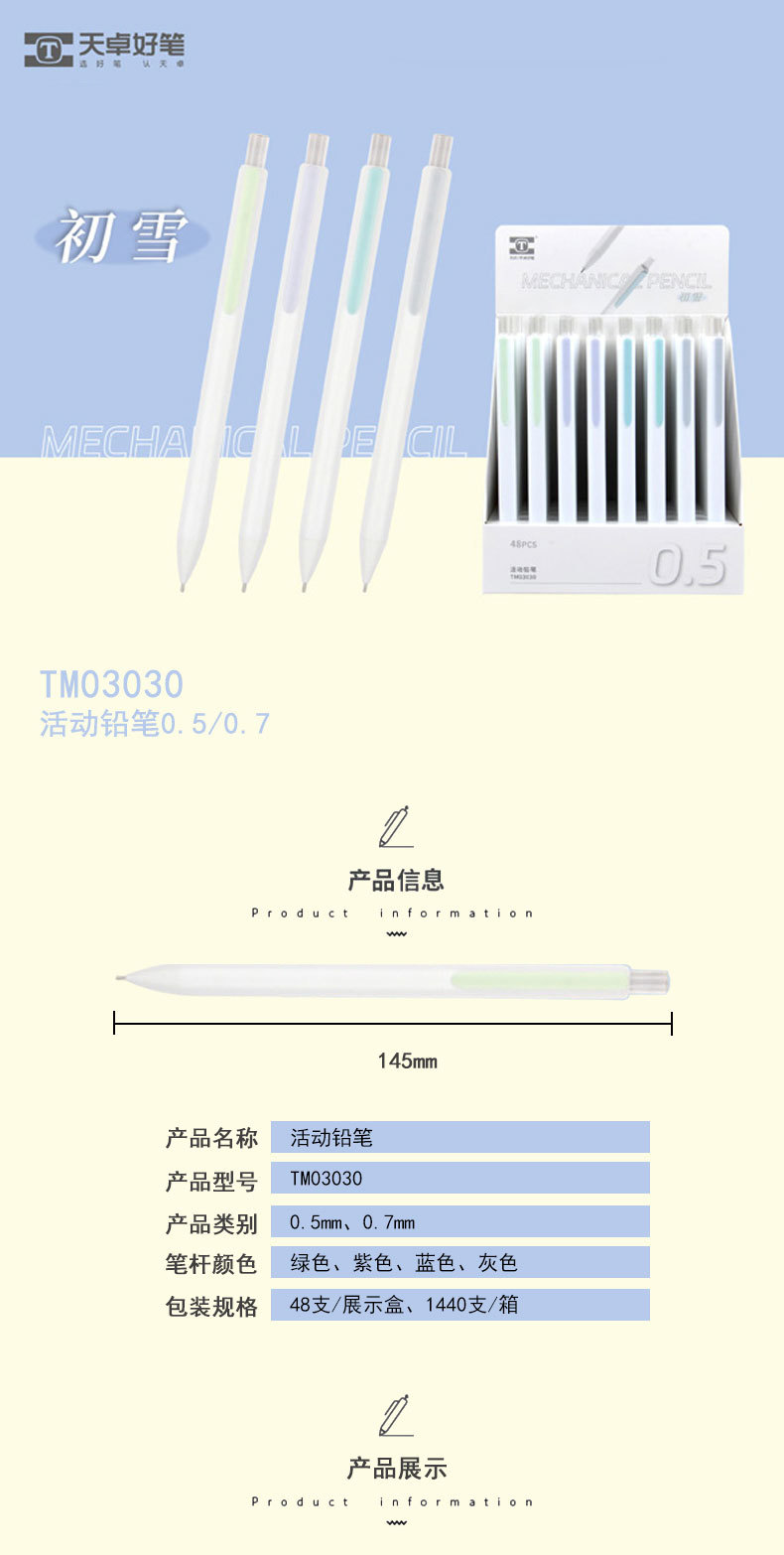 Tianzhuo 03030 초기 눈 시리즈 비 인쇄 스타일 모방 펜 홀더 이동식 연필 0.5/0.7 자동 연필 초등학생