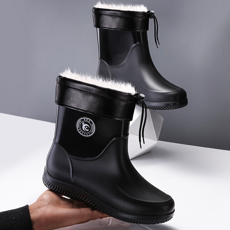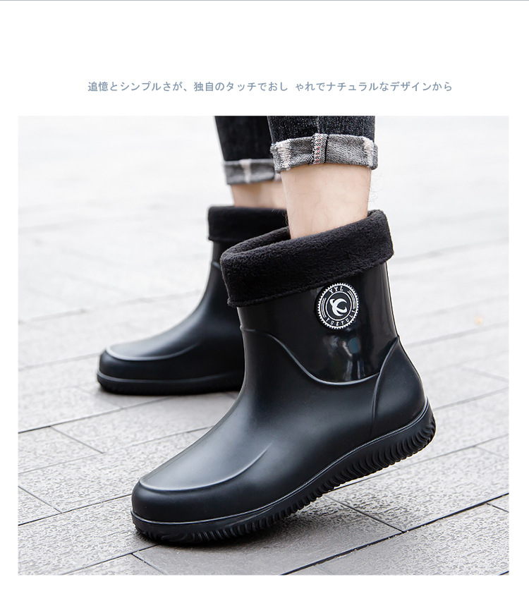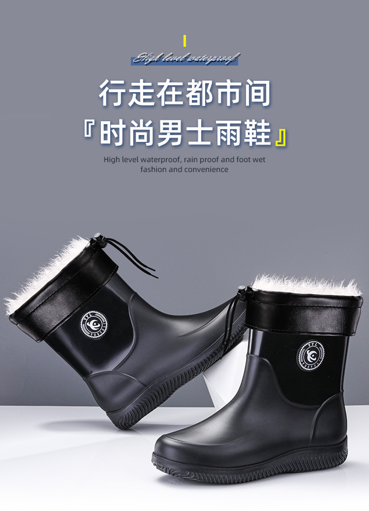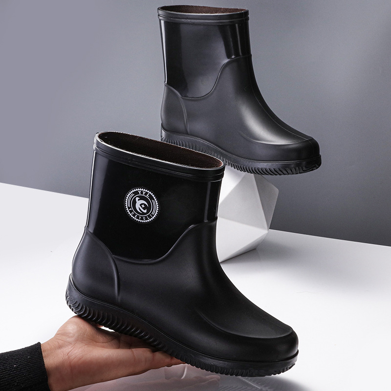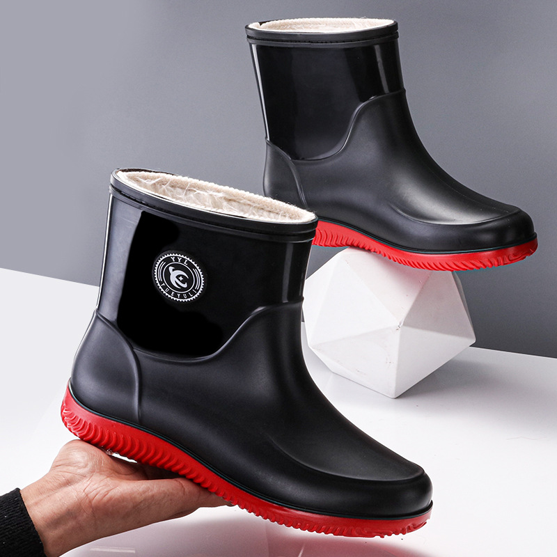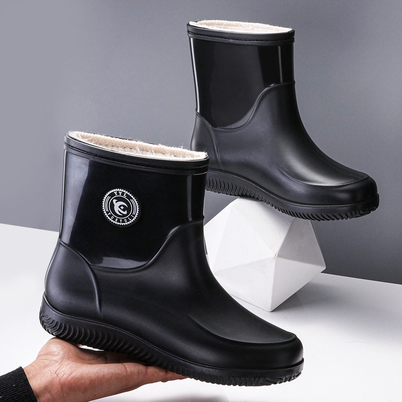 패션 남성 장화 짧은 미끄럼 방지 방수 패션 장화 따뜻한 고무 신발 야외 중간 종아리 물 신발 국경 배달스토어 가기