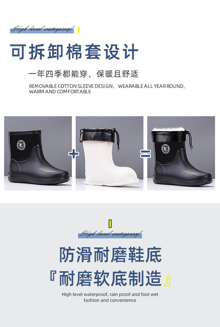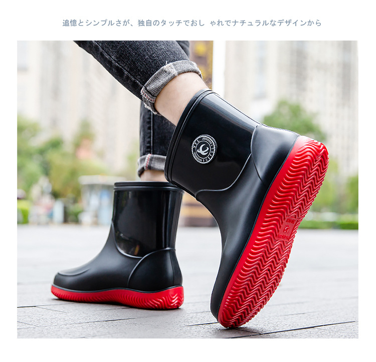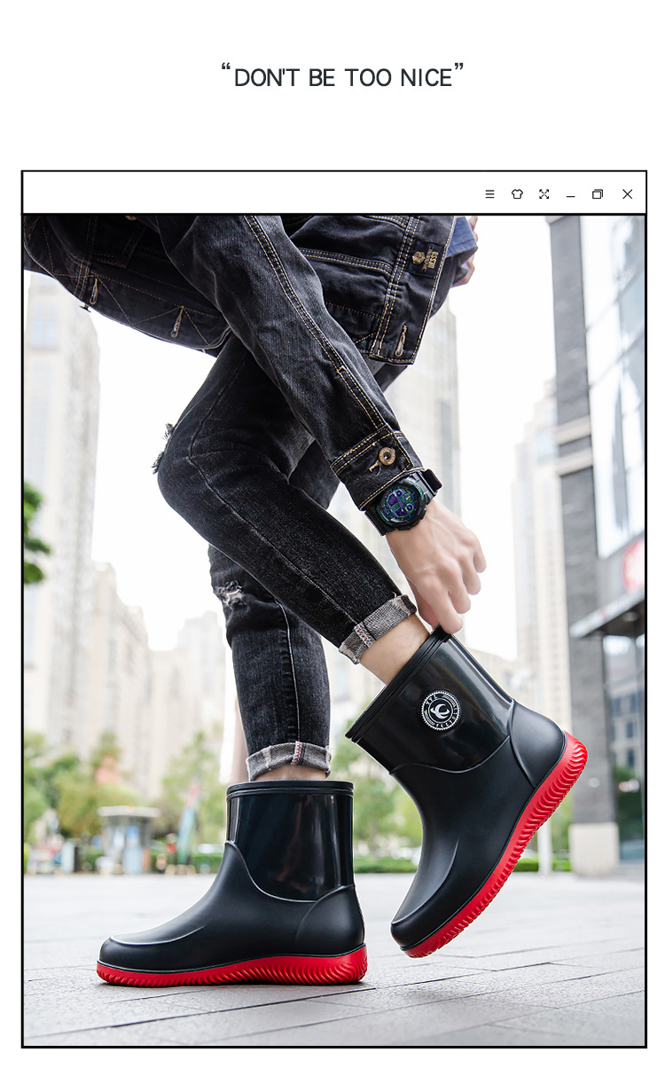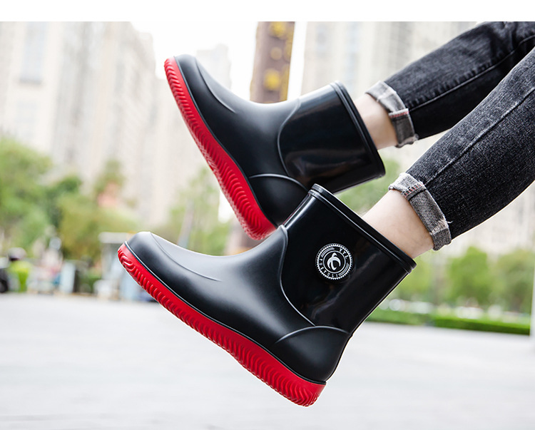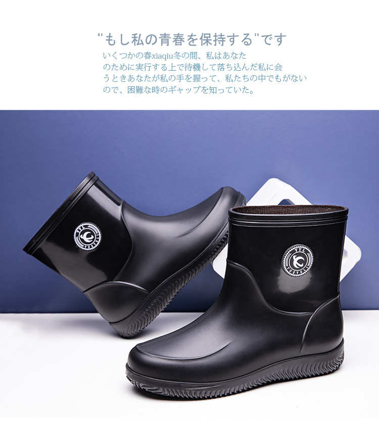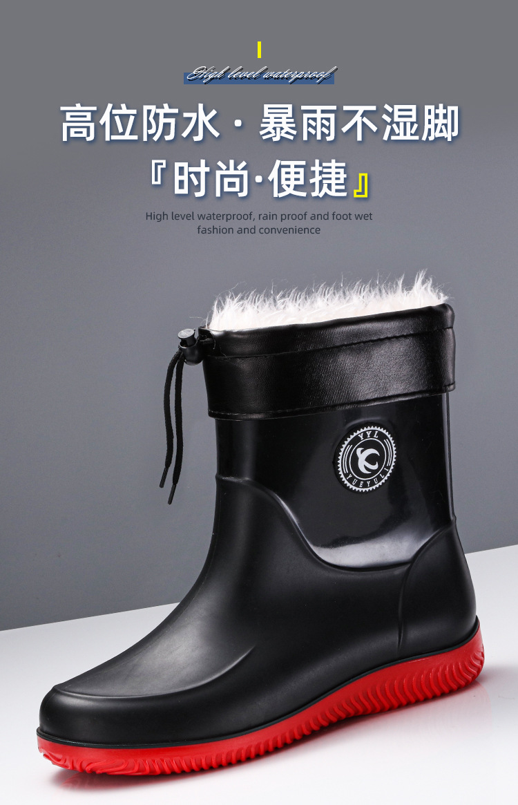 패션 남성 장화 짧은 미끄럼 방지 방수 패션 장화 따뜻한 고무 신발 야외 중간 종아리 물 신발 국경 배달스토어 가기