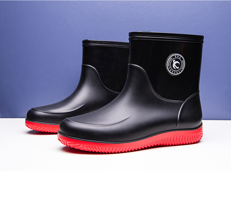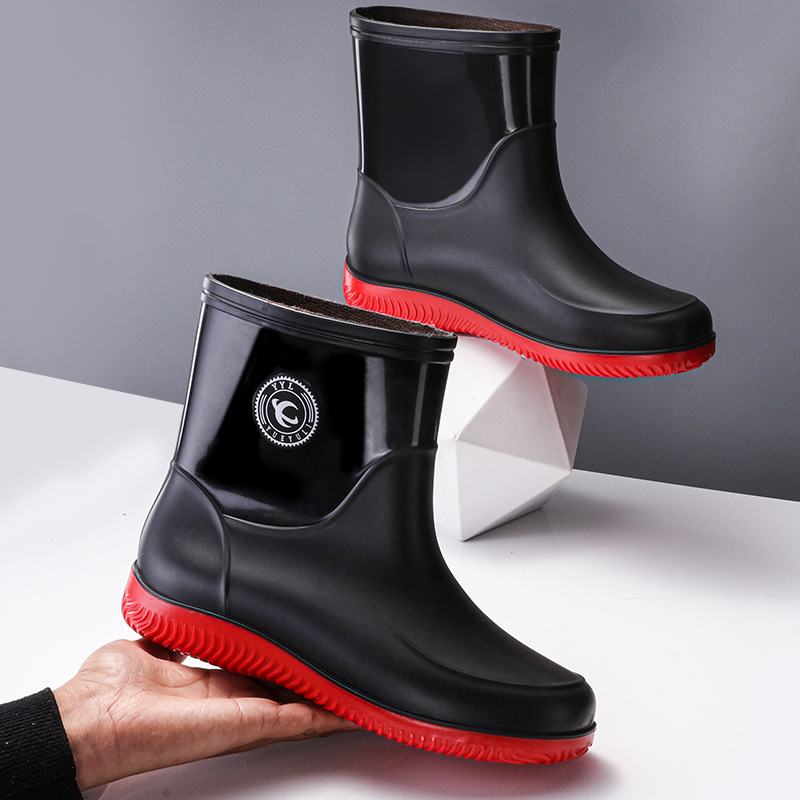 패션 남성 장화 짧은 미끄럼 방지 방수 패션 장화 따뜻한 고무 신발 야외 중간 종아리 물 신발 국경 배달
