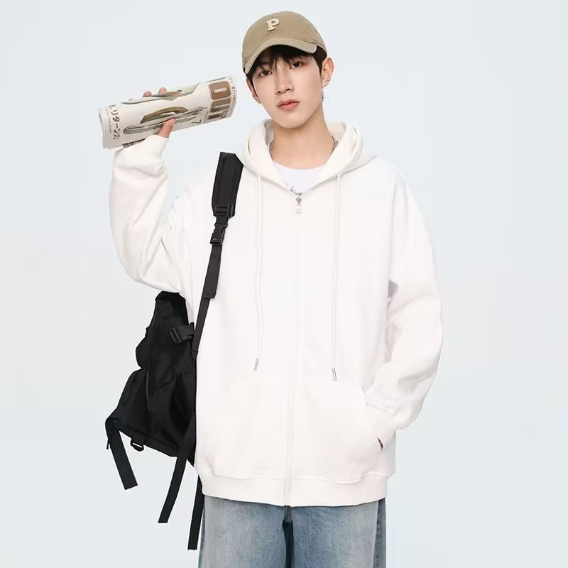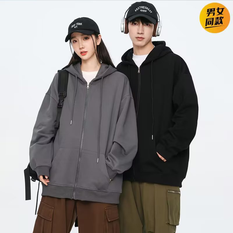 2024 봄과 가을 새로운 패션 브랜드 캐주얼 카디건 지퍼 스웨터 남성 단색 후드 스웨터 커플 코트
