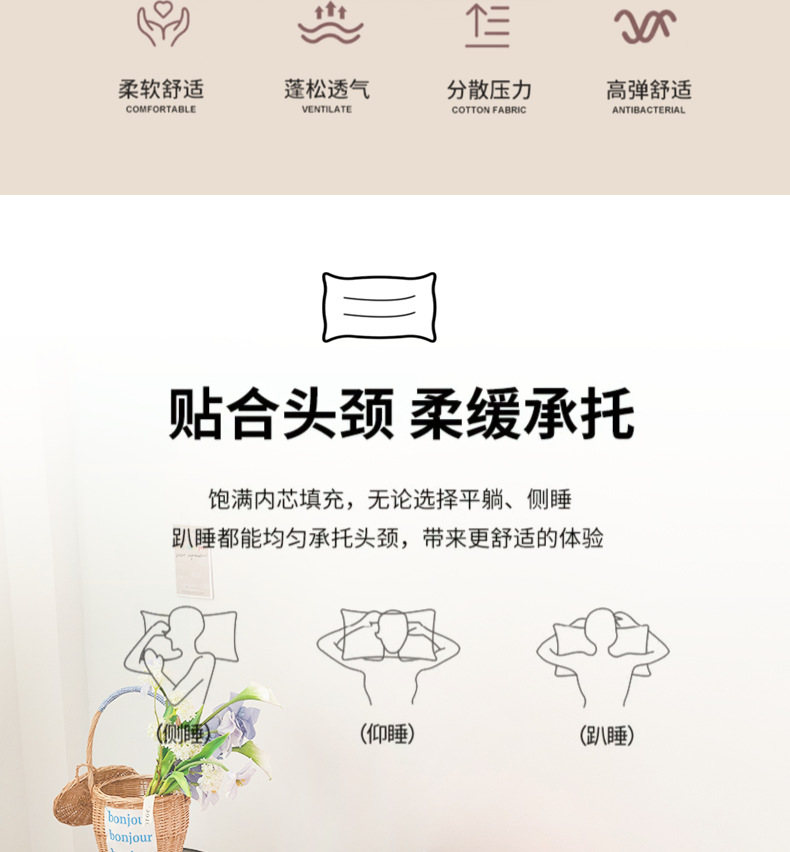 성인 베개 부드러운 베개 얇은 베개 빨 수있는 자궁 경부 지원 슈퍼 부드러운 단일 수면 보조 가정 빨 수있는 낮은 베개 베개 코어스토어 가기