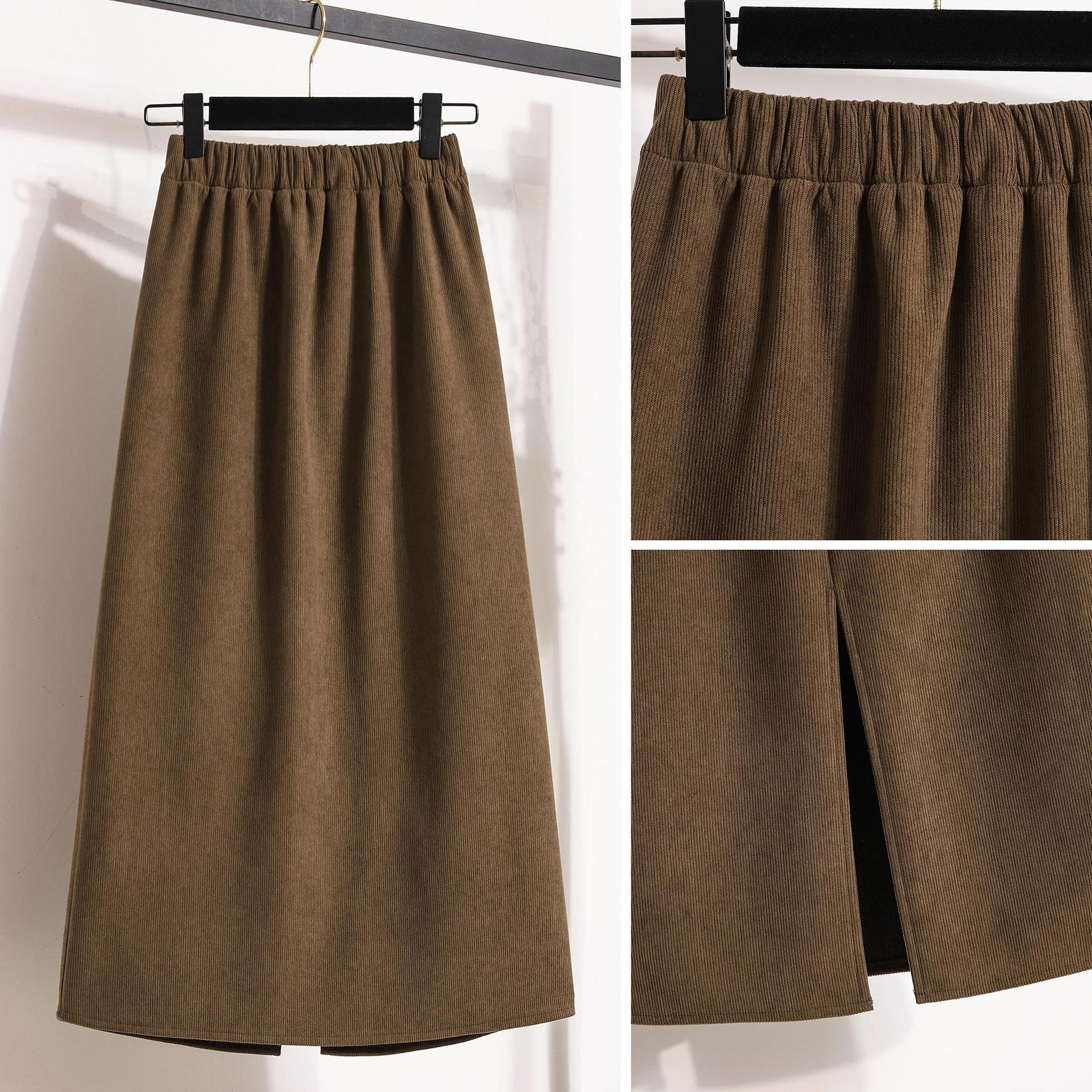 기모 두꺼운 스커트 한국 스타일 슬리밍 높은 허리 여성 봄, 가을, 겨울 새로운 스플릿 캐주얼 미디 스커트스토어 가기
