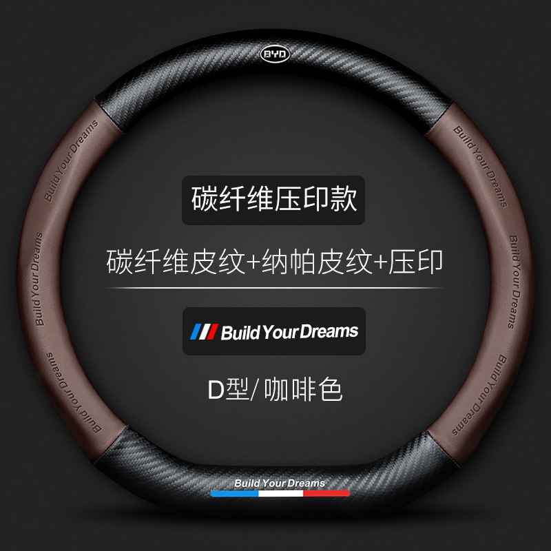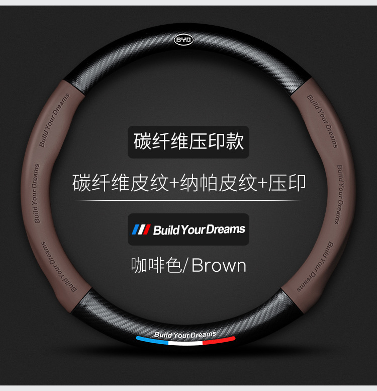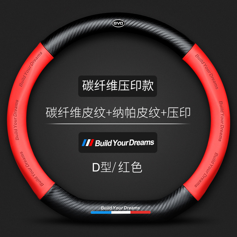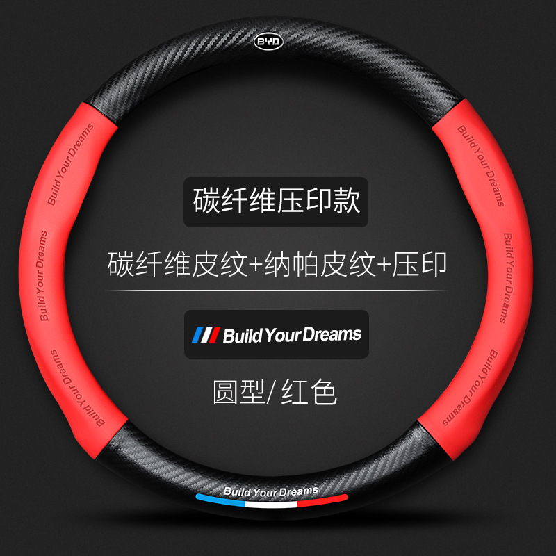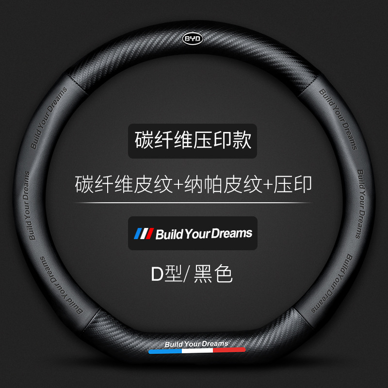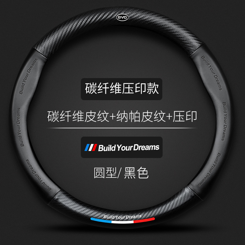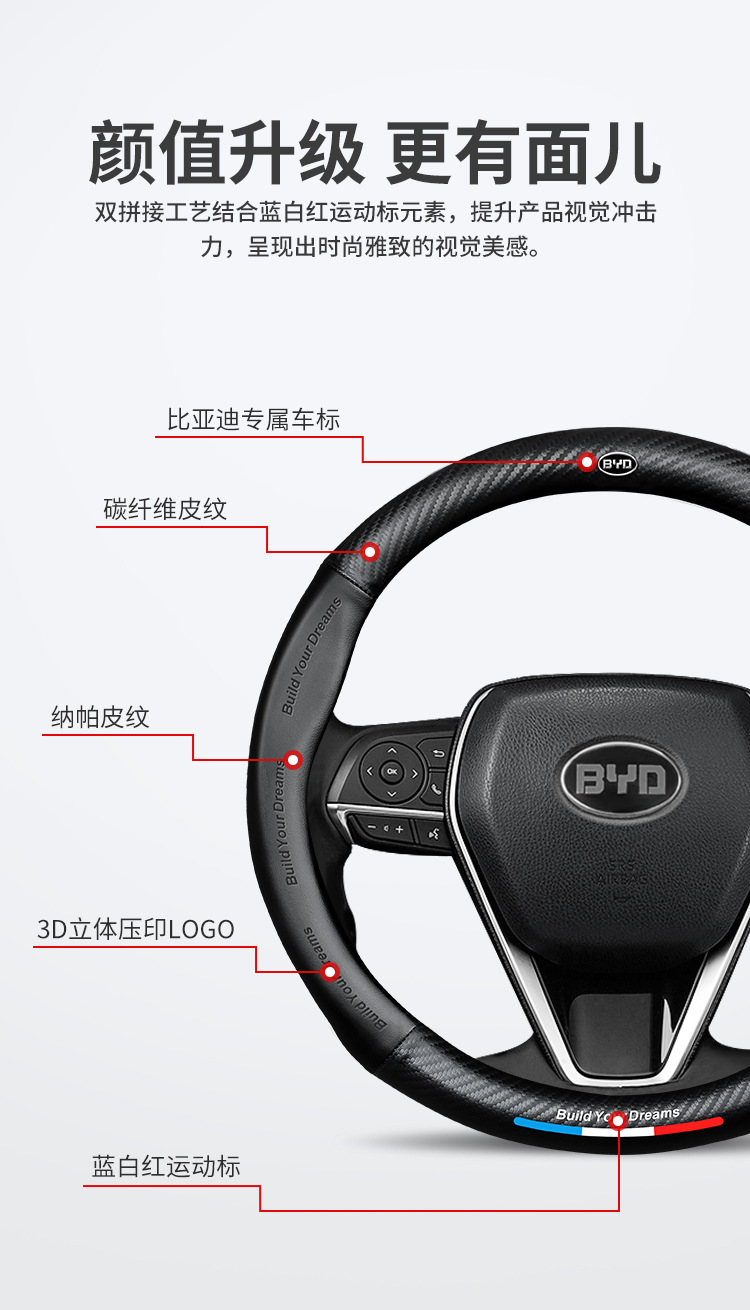 BYD 자동차 스티어링 휠 커버 탄소 섬유 3D 양각 스포츠 3 색 미끄럼 방지 마모 통기성 가죽 그립 커버