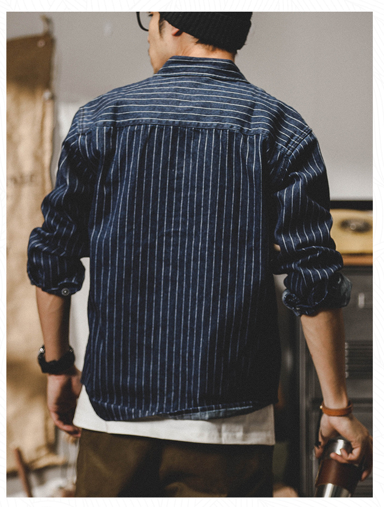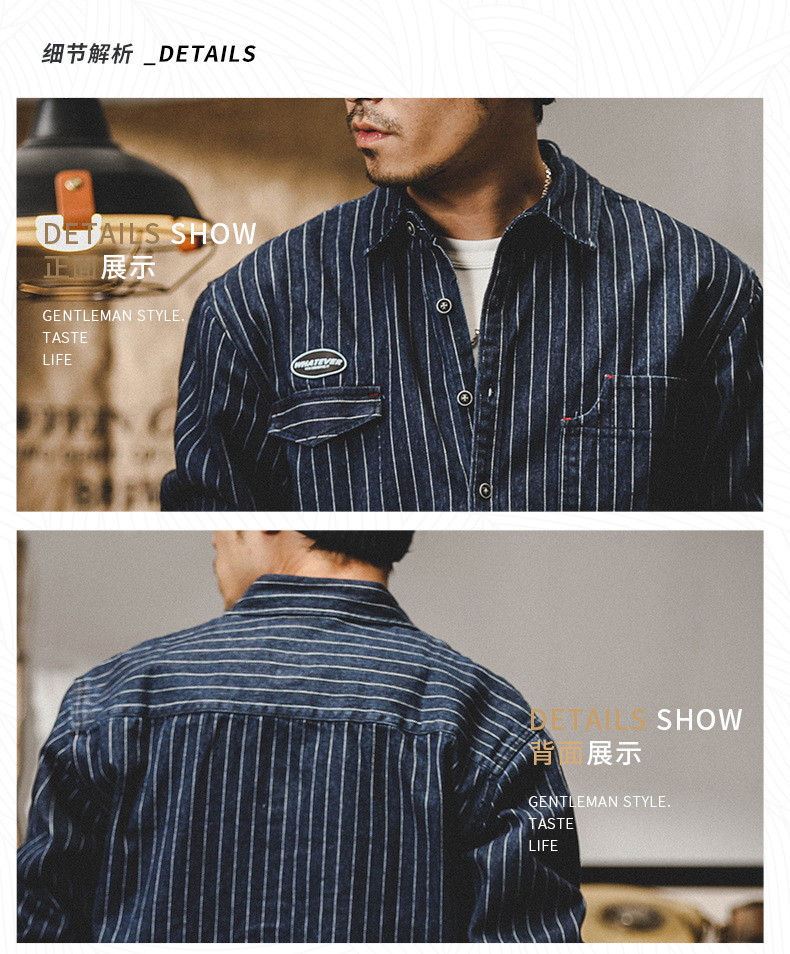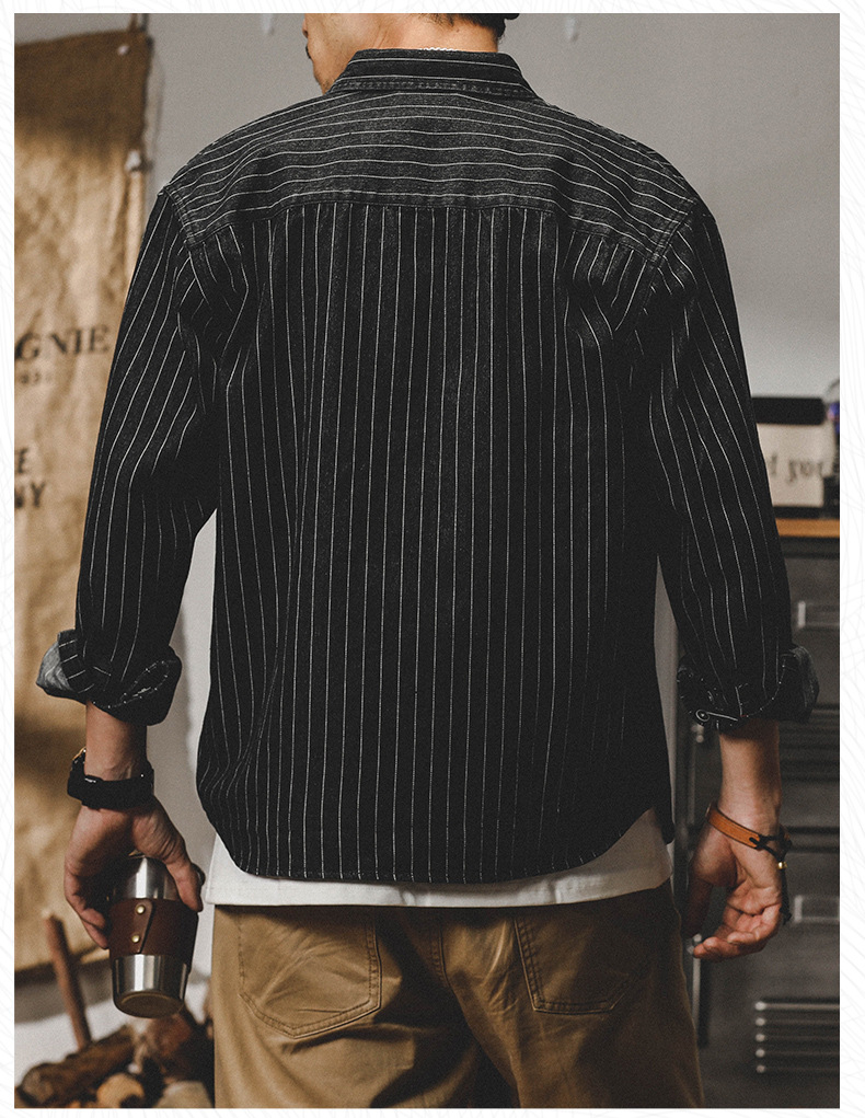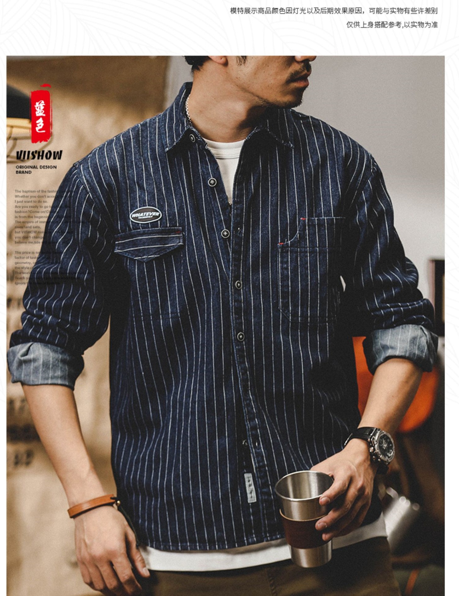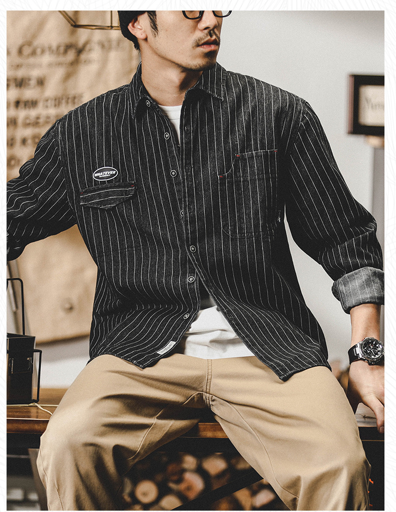 미국 스타일의 무거운 줄무늬 데님 셔츠 남자의 긴 소매 2024 새로운 느슨한 작업복 셔츠 남자의 봄과 가을 코트 남자스토어 가기