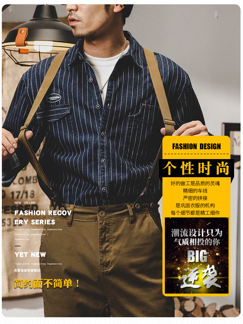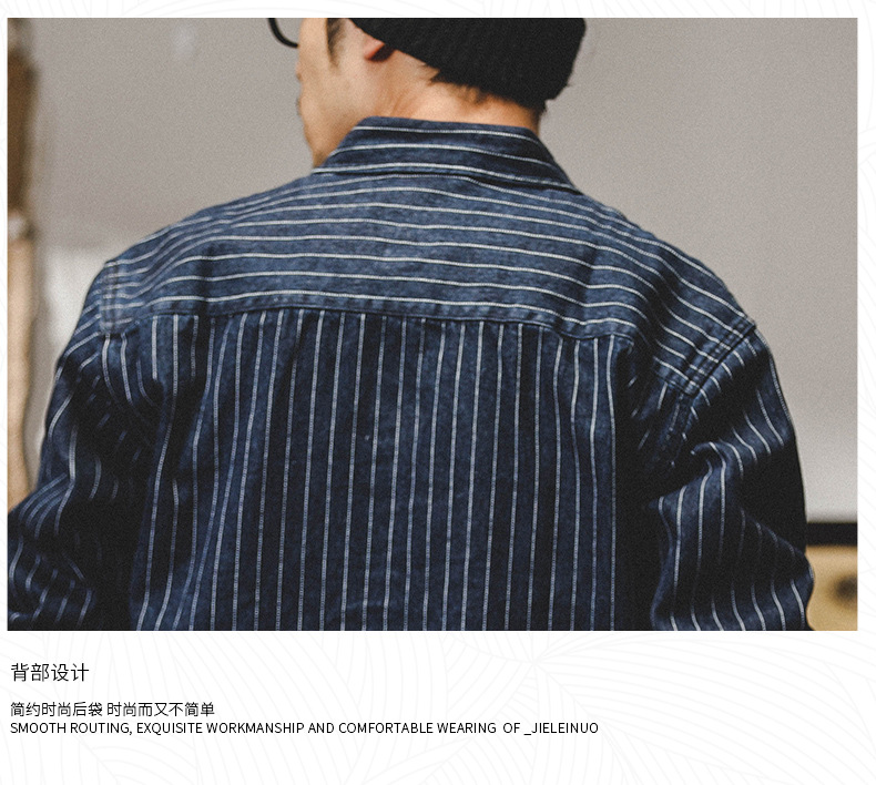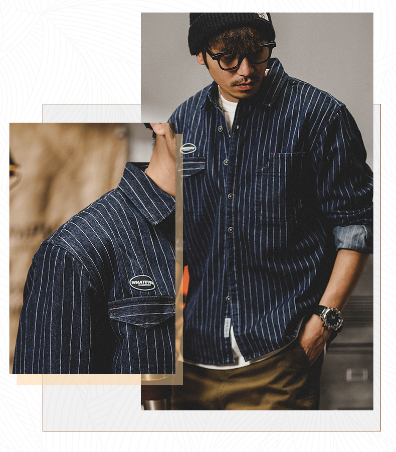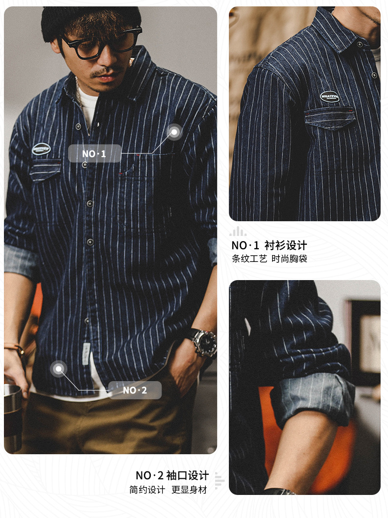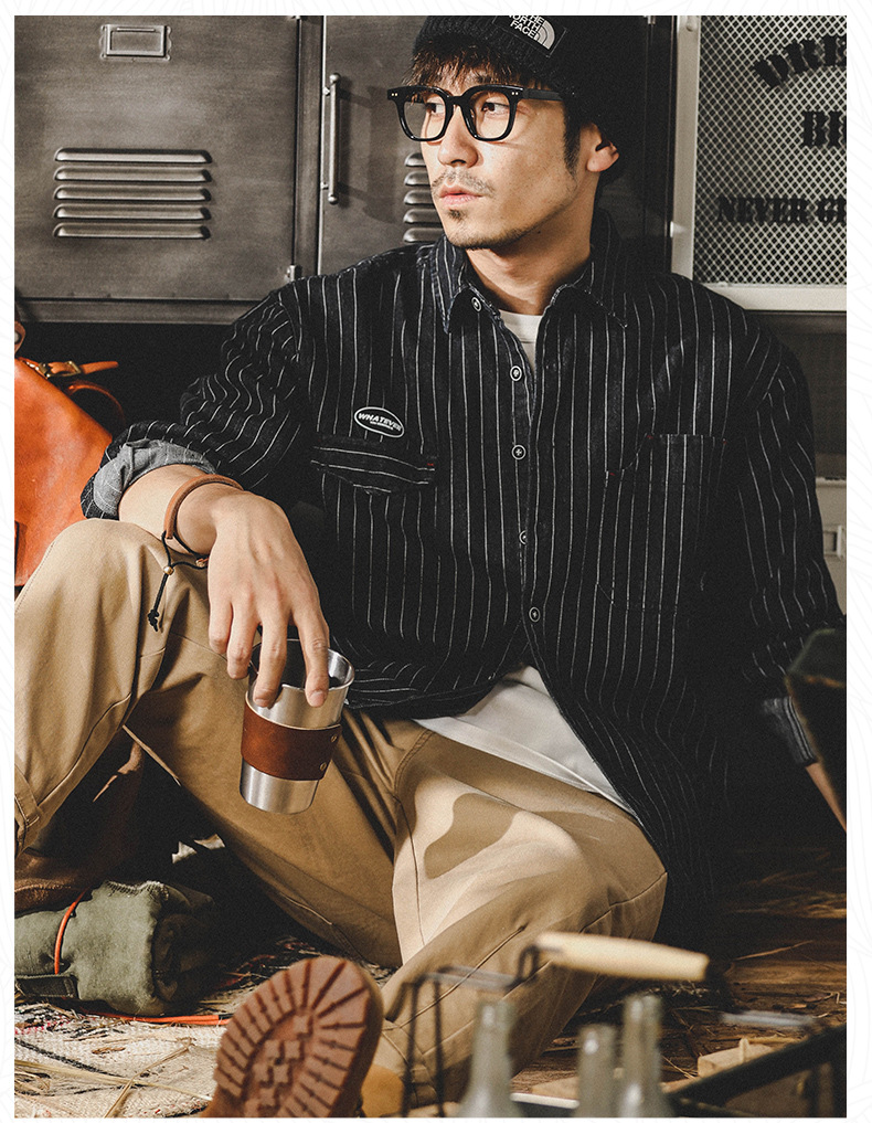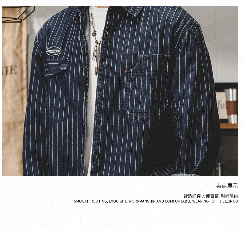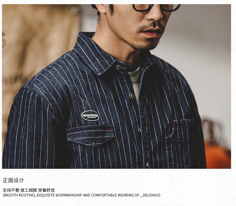 미국 스타일의 무거운 줄무늬 데님 셔츠 남자의 긴 소매 2024 새로운 느슨한 작업복 셔츠 남자의 봄과 가을 코트 남자스토어 가기