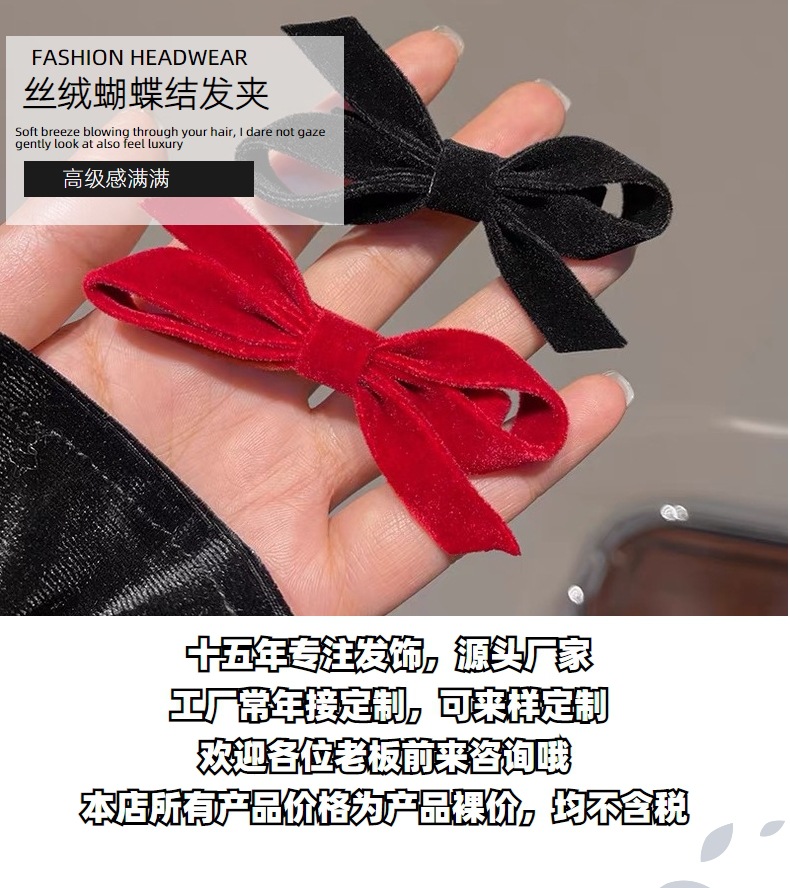 가을과 겨울 새해 빨간 빈티지 벨벳 나비 머리핀 기질 귀여운 앞머리 측면 깨진 머리 덕빌 클립 헤어 액세서리