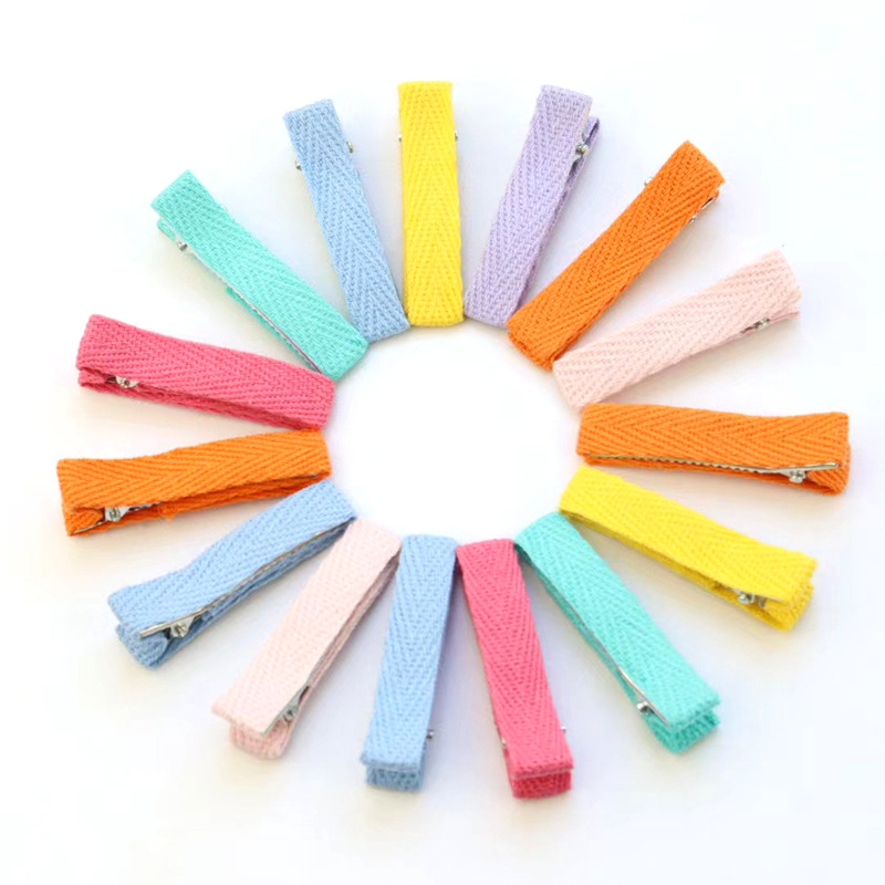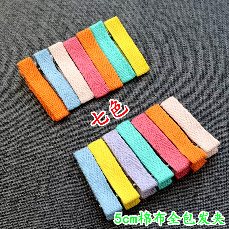 5cm 캔디 컬러 코튼 클립 DIY 손으로 짠 소재 헤어핀 더블 플러그 사이드 클립 머리 장식 도매 액세서리스토어 가기
