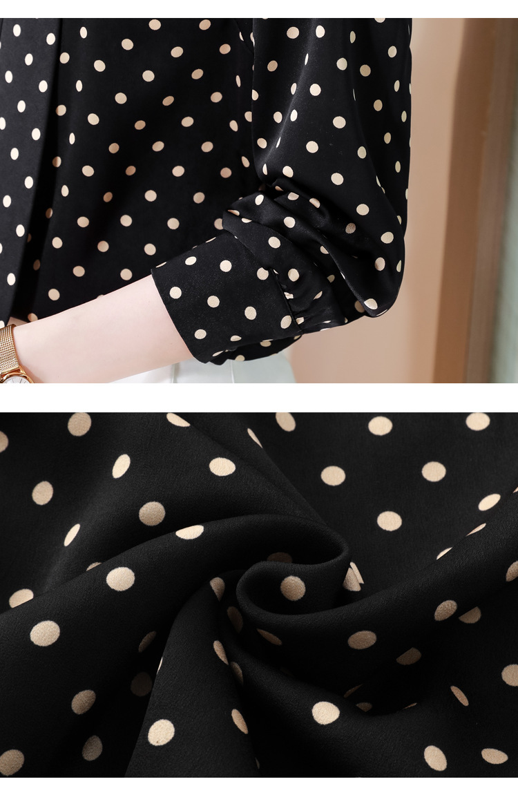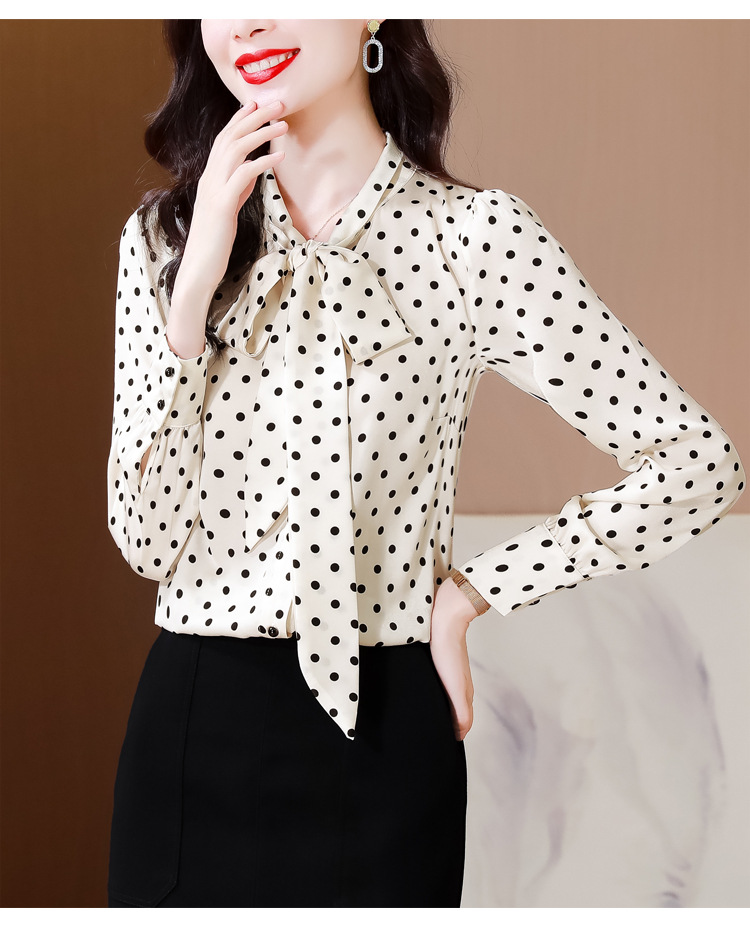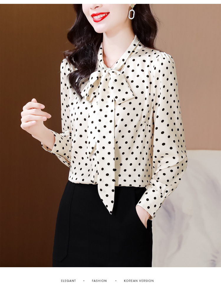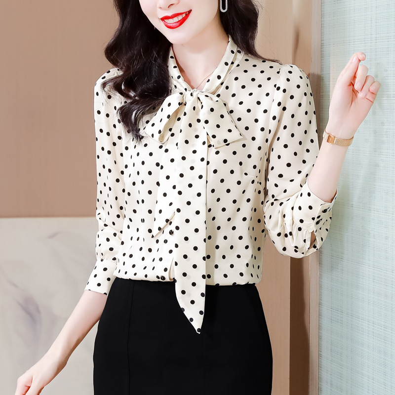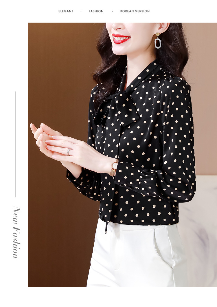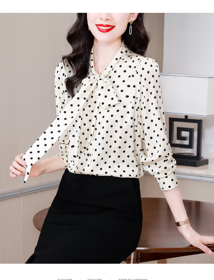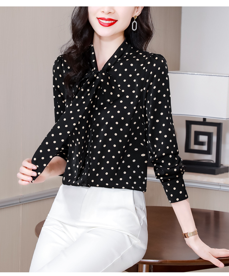 그린 1781 폴카 도트 보우 V 넥 긴팔 쉬폰 셔츠 여성용 2025 새로운 스타일 서양식 셔츠 슬림하고 다재다능한 셔츠스토어 가기