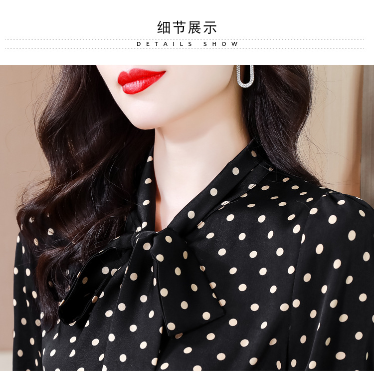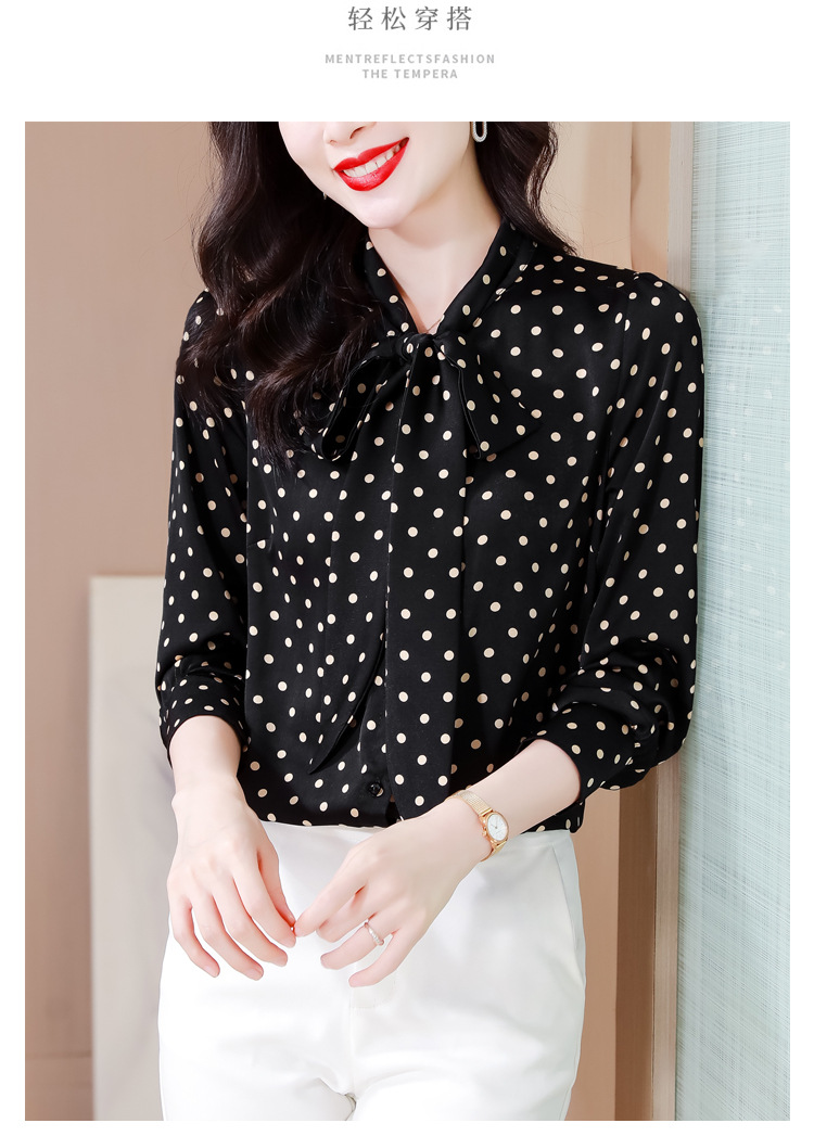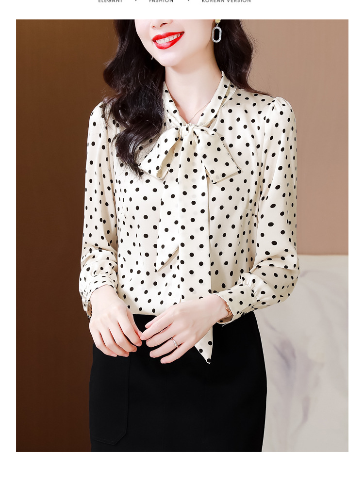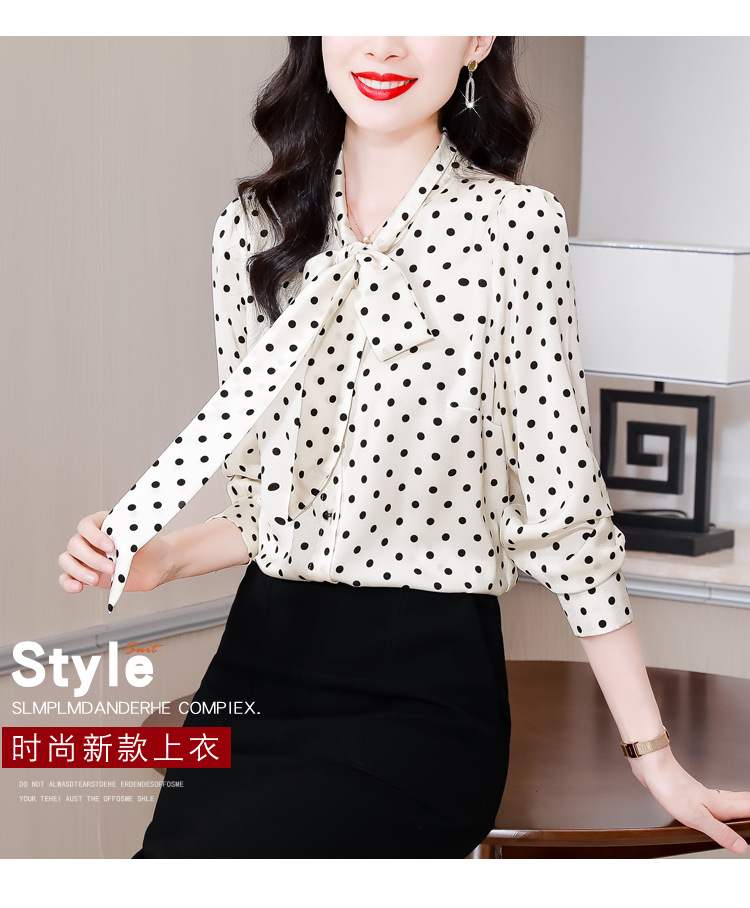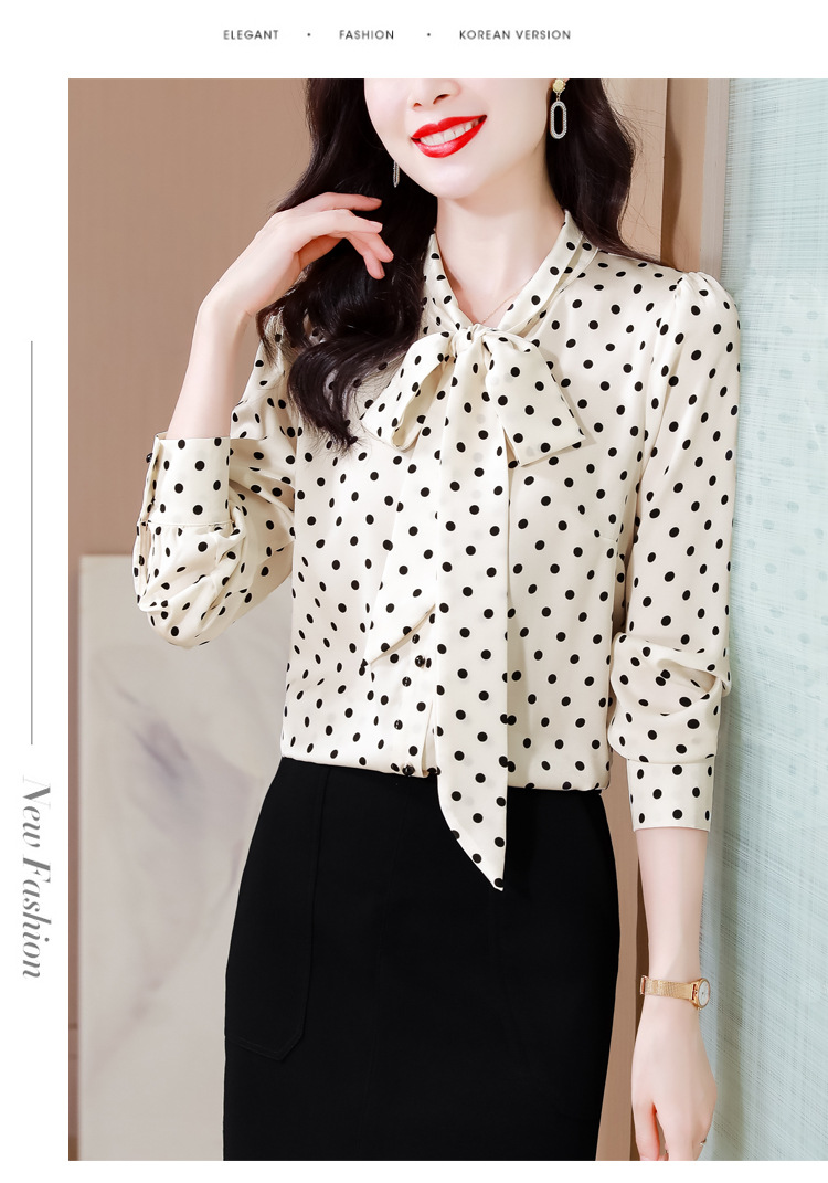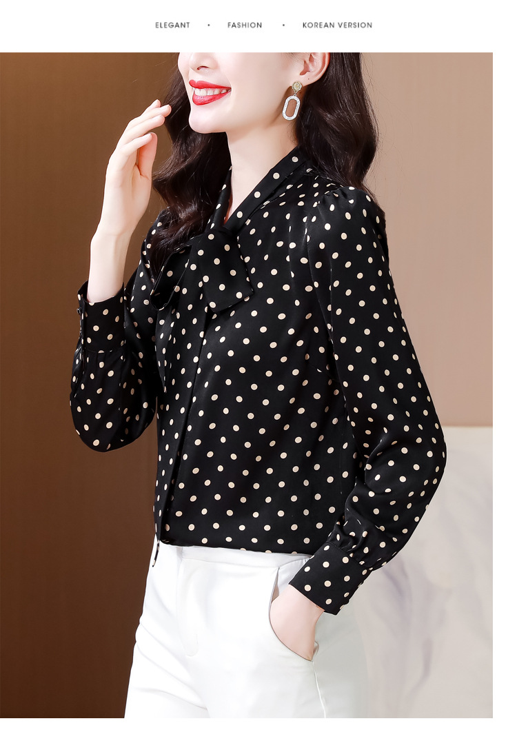 그린 1781 폴카 도트 보우 V 넥 긴팔 쉬폰 셔츠 여성용 2025 새로운 스타일 서양식 셔츠 슬림하고 다재다능한 셔츠스토어 가기