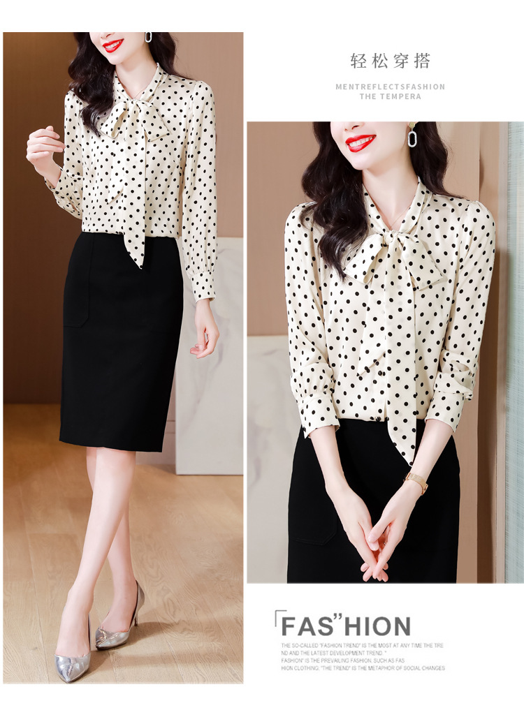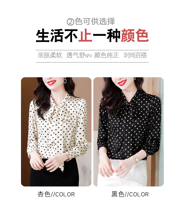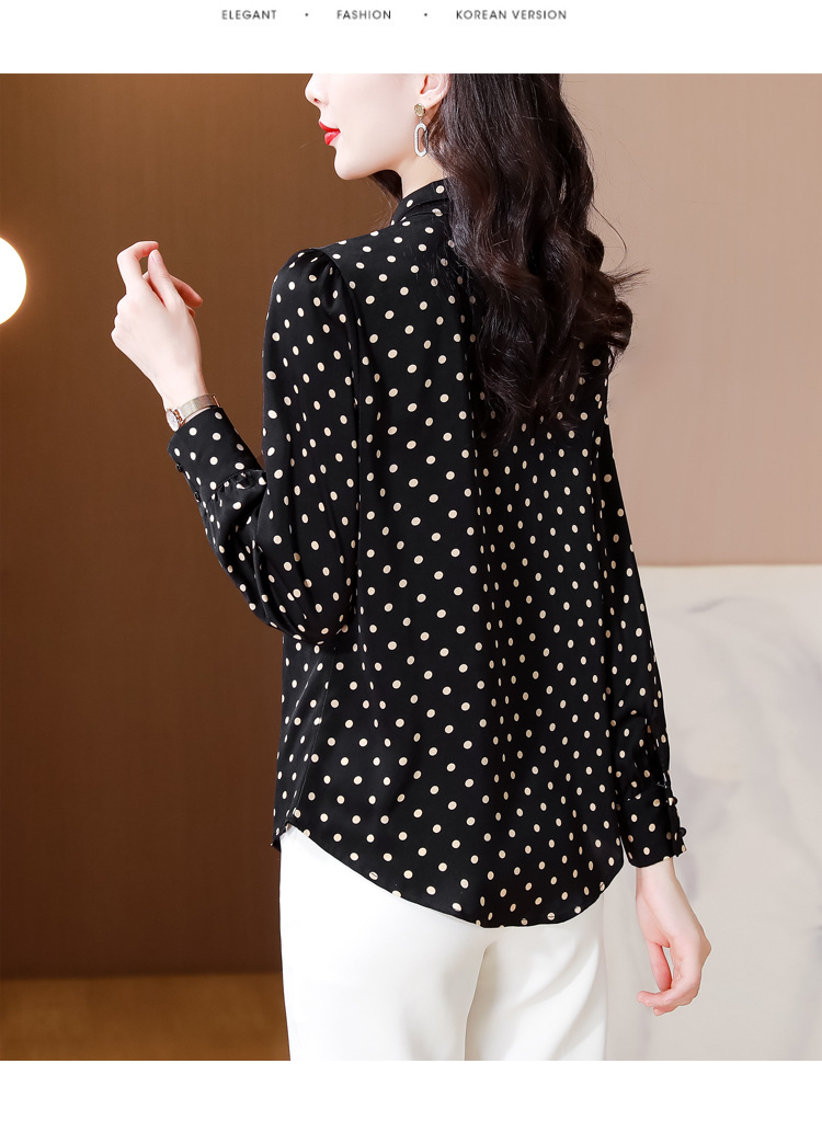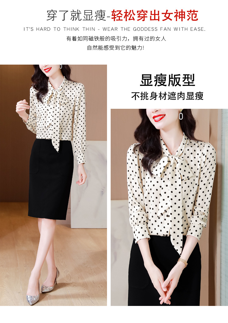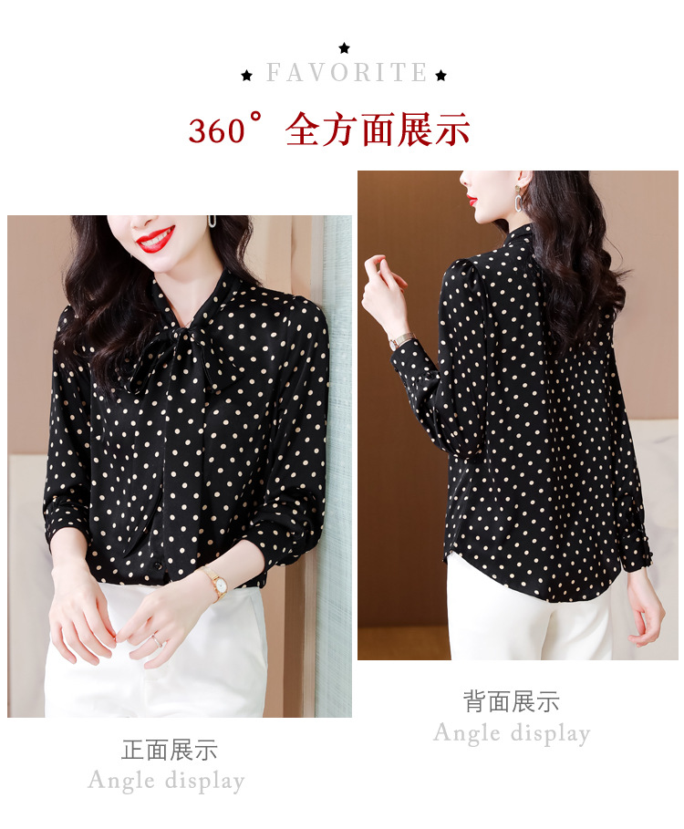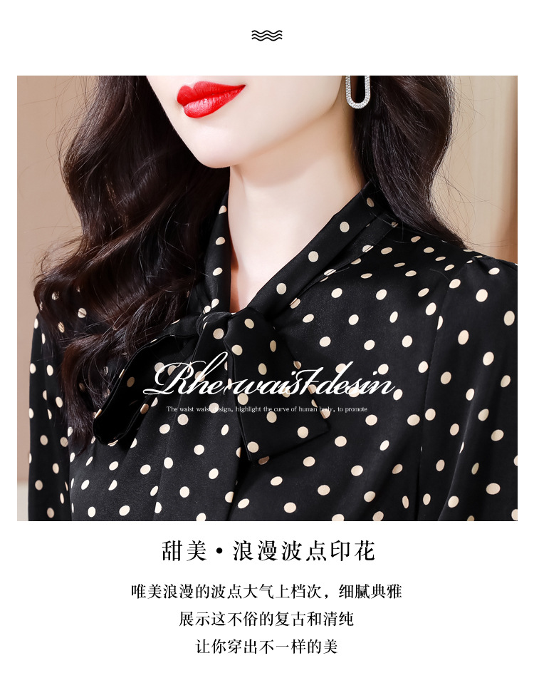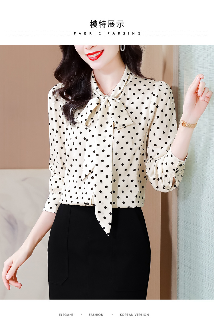 그린 1781 폴카 도트 보우 V 넥 긴팔 쉬폰 셔츠 여성용 2025 새로운 스타일 서양식 셔츠 슬림하고 다재다능한 셔츠스토어 가기