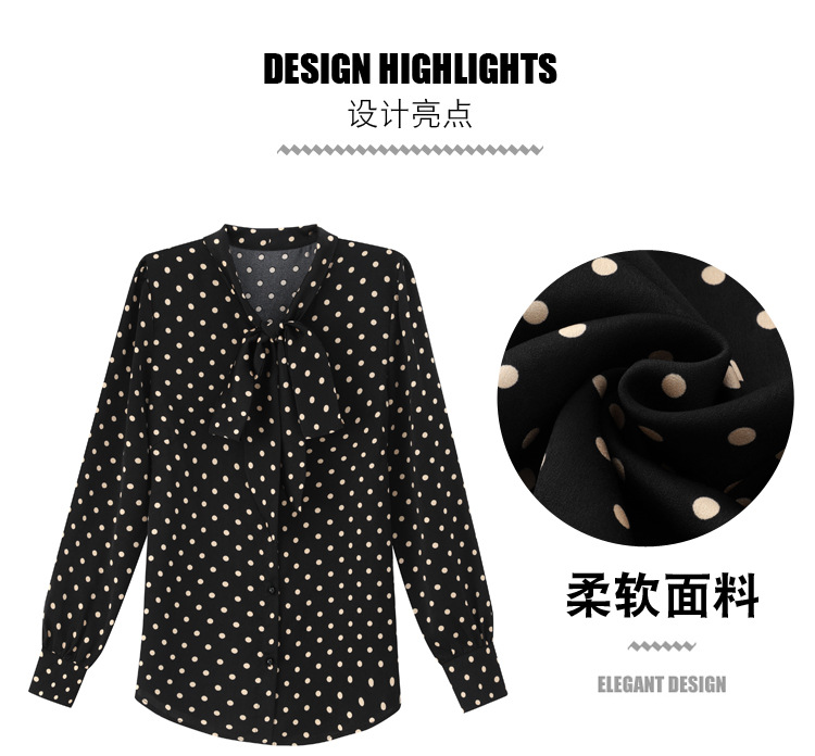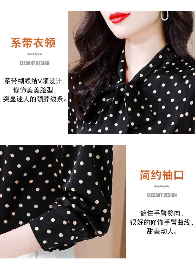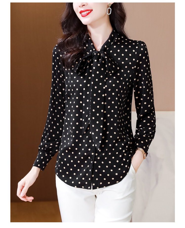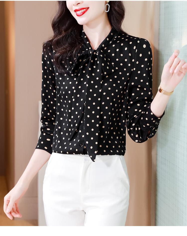 그린 1781 폴카 도트 보우 V 넥 긴팔 쉬폰 셔츠 여성용 2025 새로운 스타일 서양식 셔츠 슬림하고 다재다능한 셔츠