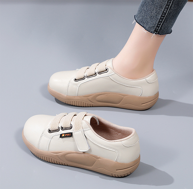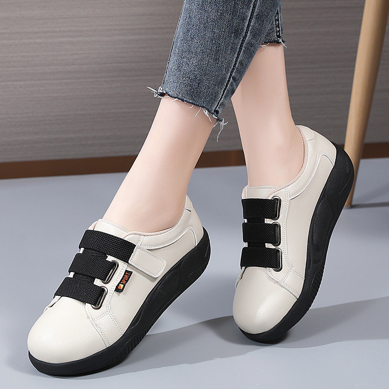 봄철 여성용 크로스보더 두꺼운 밑창 키높이 화이트 슈즈, 한국 스타일 여성화, 다용도 캐주얼 소프트솔 싱글 슈즈, 천연가죽 학생 스니커즈스토어 가기