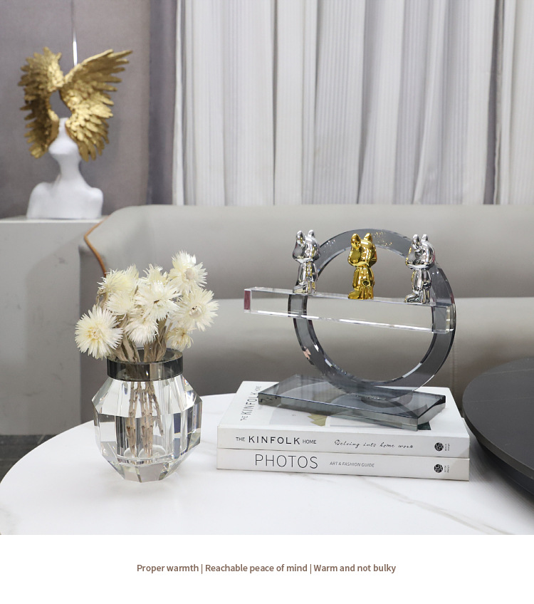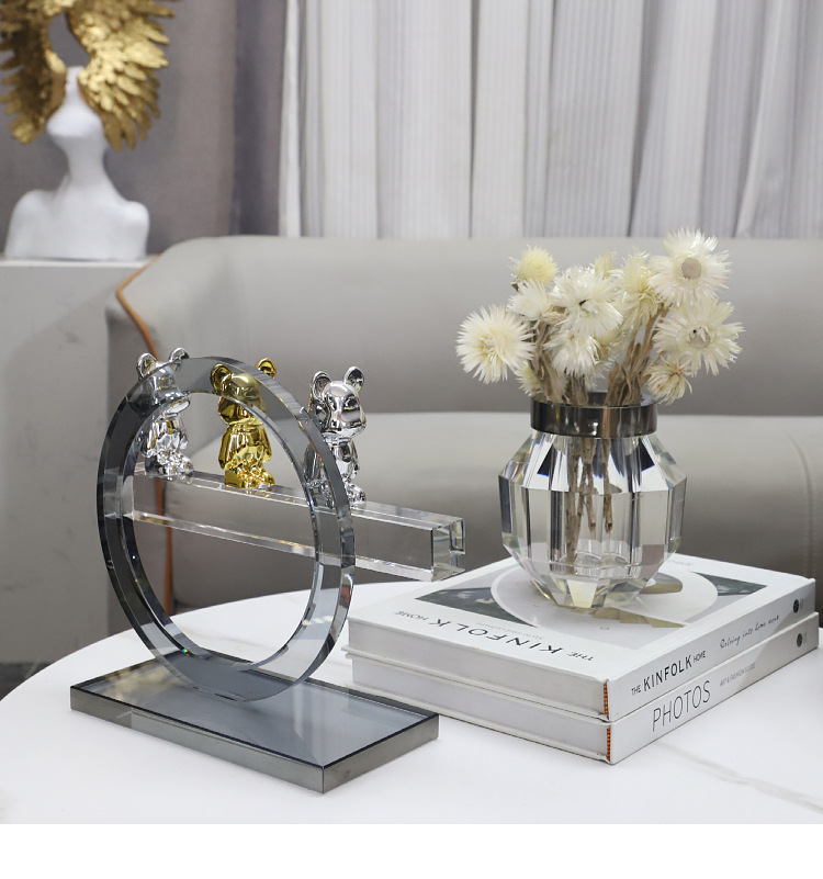 유럽 스타일의 가벼운 고급 기하학적 크리스탈 꽃병 수지 폭력적인 곰 장식 호텔 거실 침실 모델 방 홈 장식스토어 가기