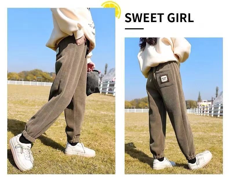 여아 코듀로이 2023 봄, 가을 바지 아동용 두꺼운 벨벳 새로운 겨울 올인원 스타일 바지스토어 가기