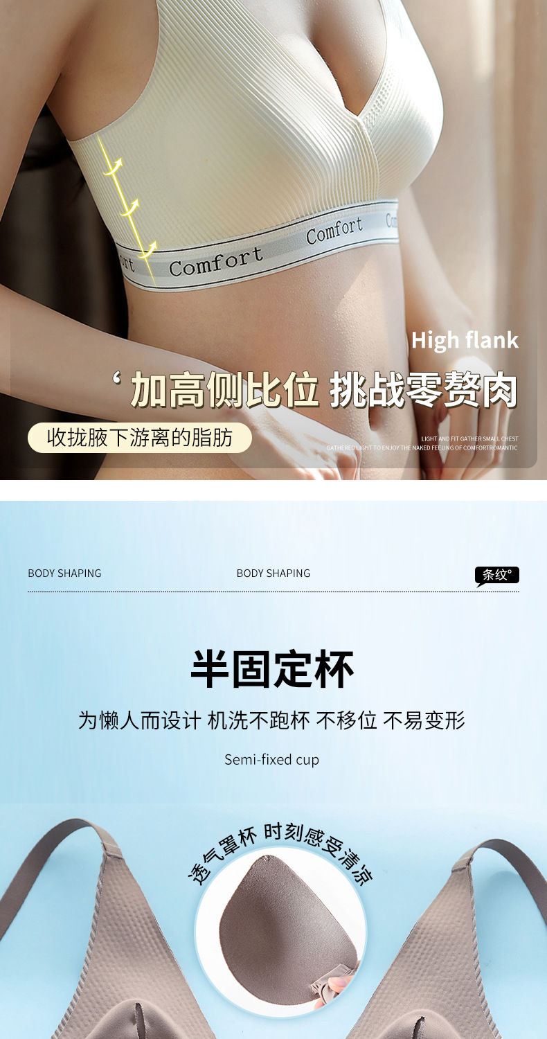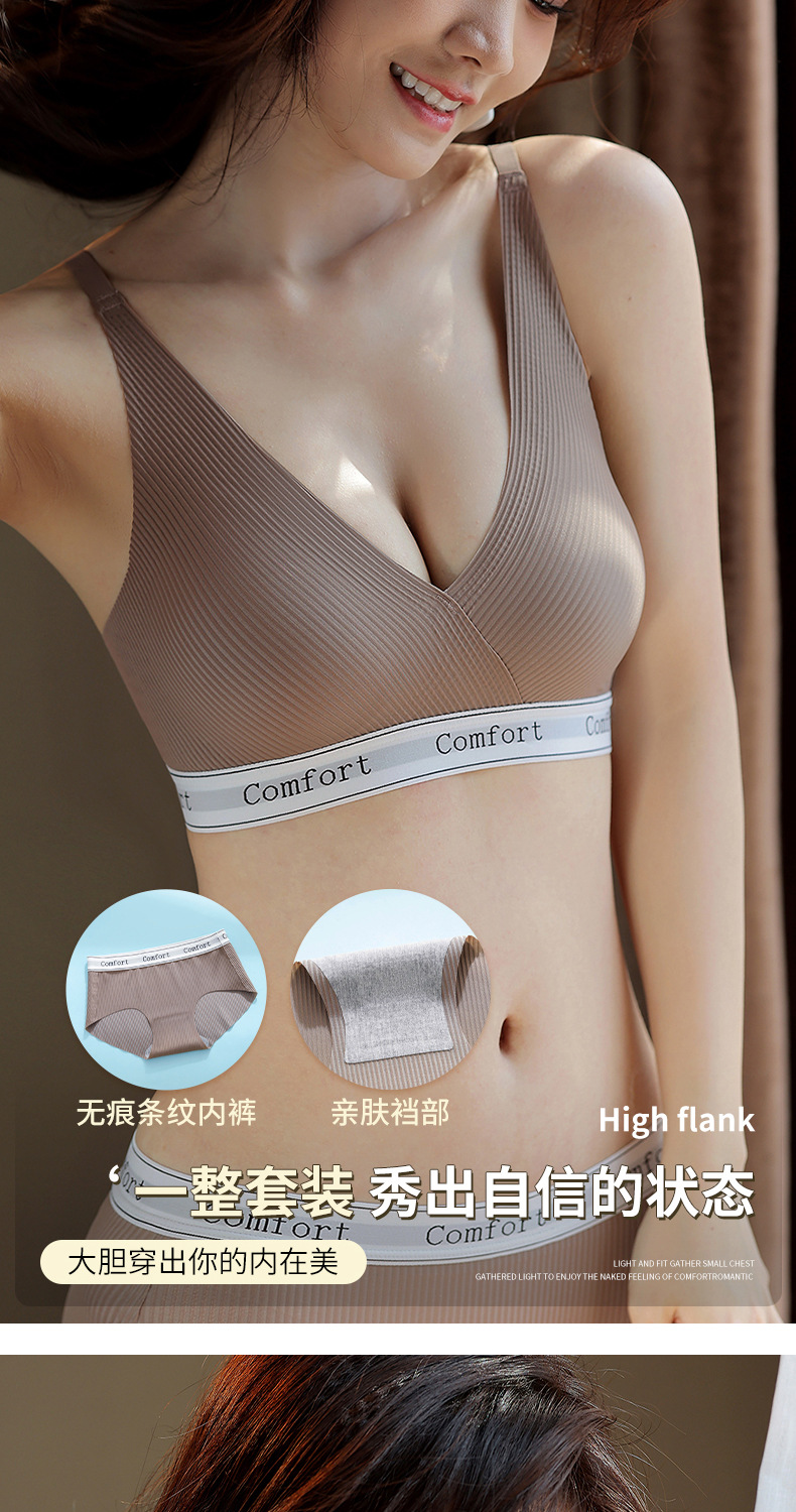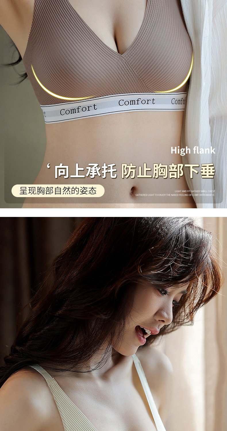 고품질 여성용 속옷, 패셔너블한 레터 스트라이프 무와이어 작은 가슴 모아주는 스포츠 레저 러닝 브라 도매스토어 가기