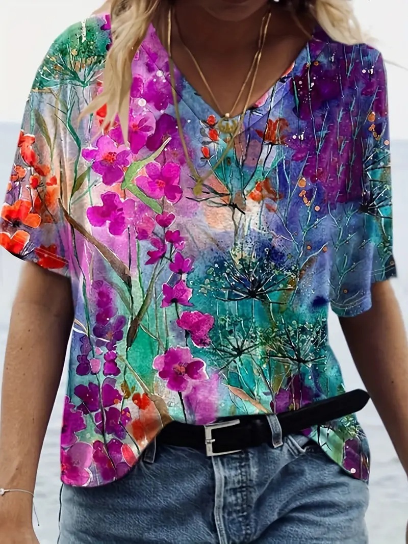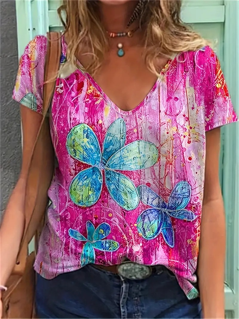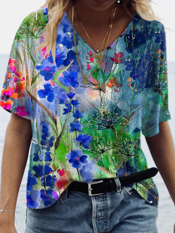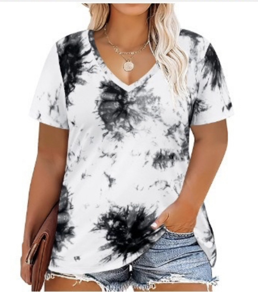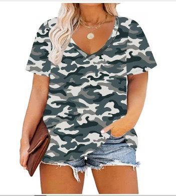 여성용 V 넥 플러스 사이즈 반팔 티셔츠 국경 새로운 트렌디 한 느슨한 티셔츠 소스 공장 도매 저렴한 탑스토어 가기