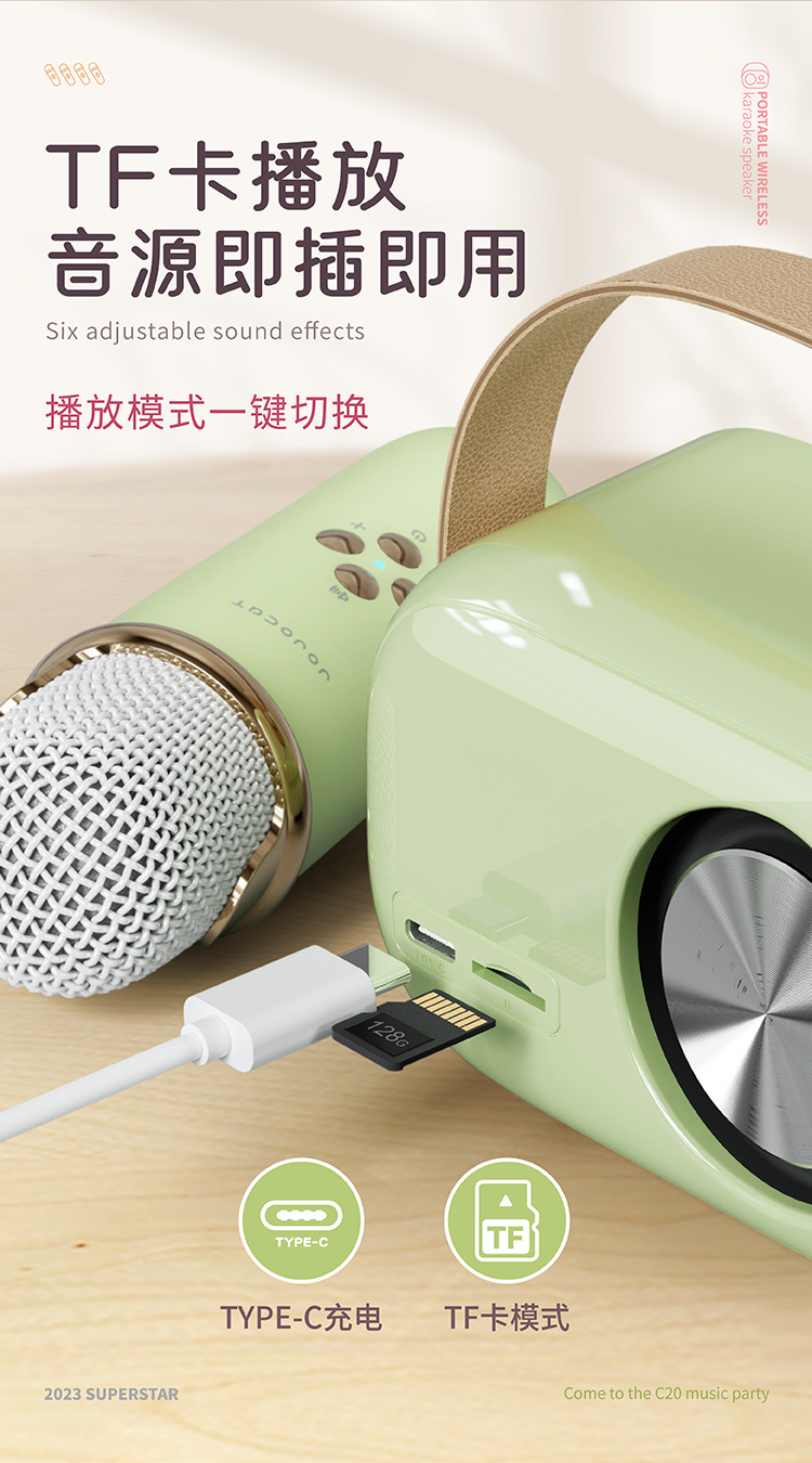 새로운 C20 미니 블루투스 가라오케 스피커 가족 야외 엔터테인먼트 무선 마이크 오디오 국경 소매 도매스토어 가기
