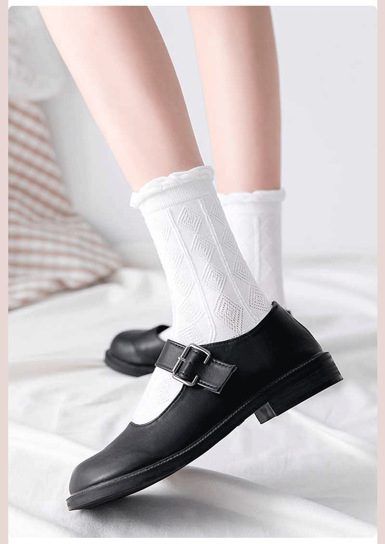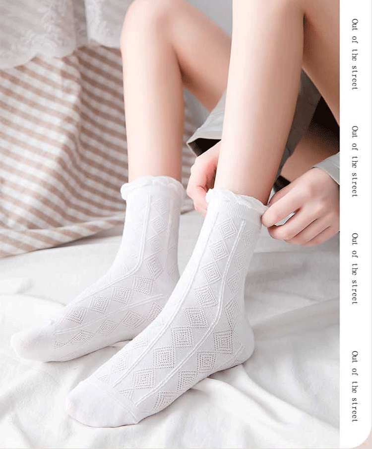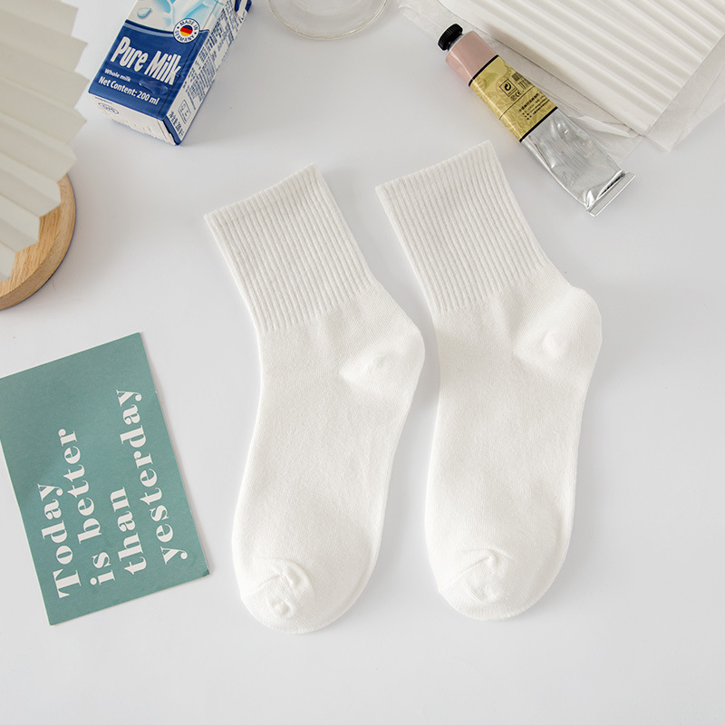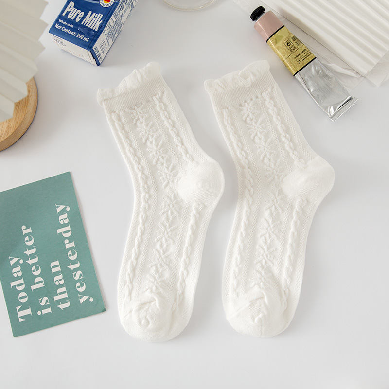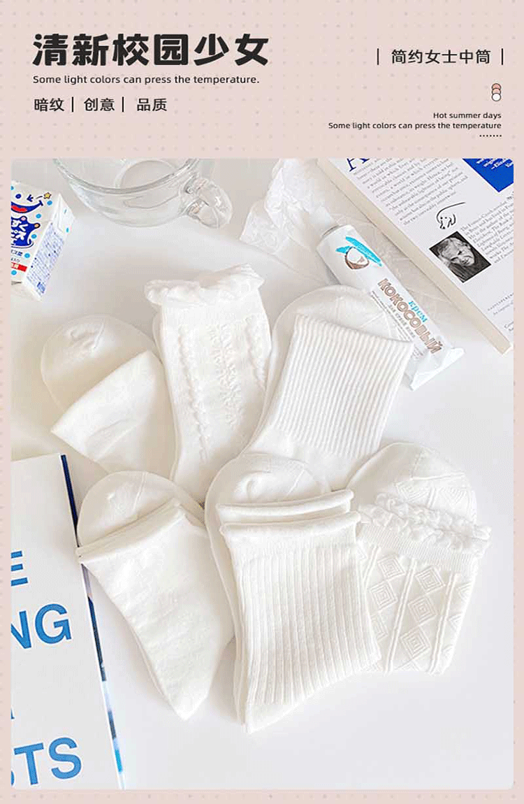 흰색 양말 여성의 귀여운 일본 jk 양말, 트렌디 한 여름 중반 종아리 양말 봄과 가을 긴 로티 타 레이스 양말