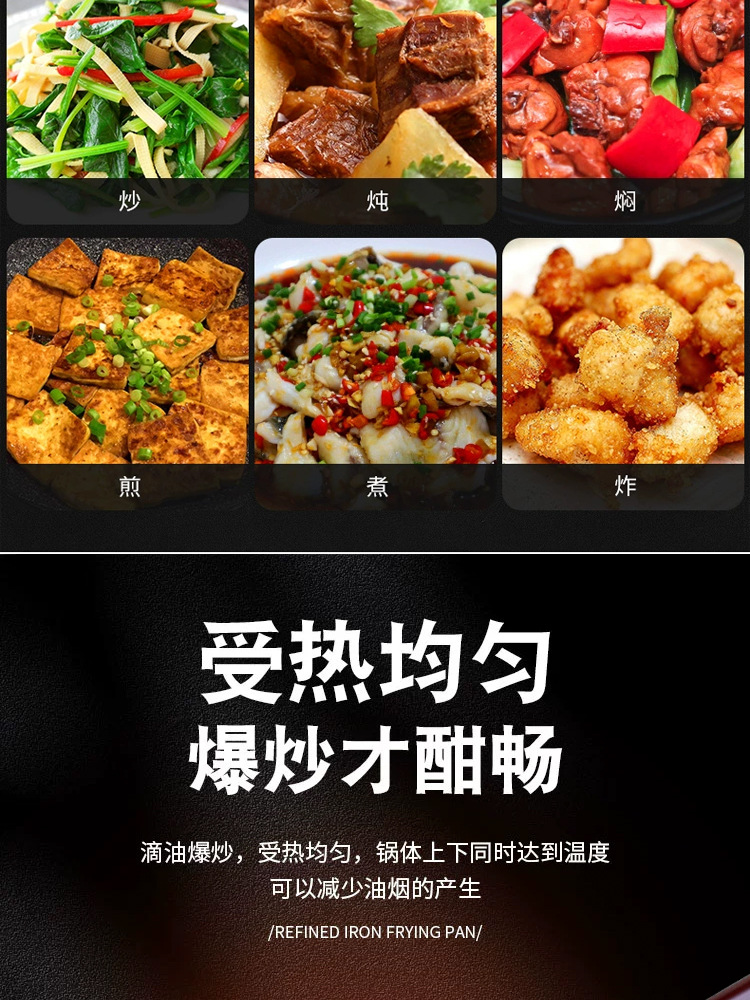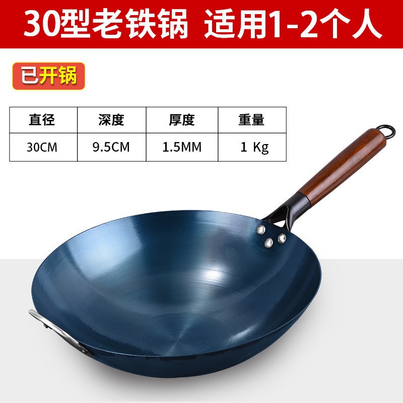 • 세트 34cm [평평한 바닥] 1.8 두꺼운 나무 손잡이 철 냄비 + 주걱 뚜껑 [수동 냄비 열기]]
