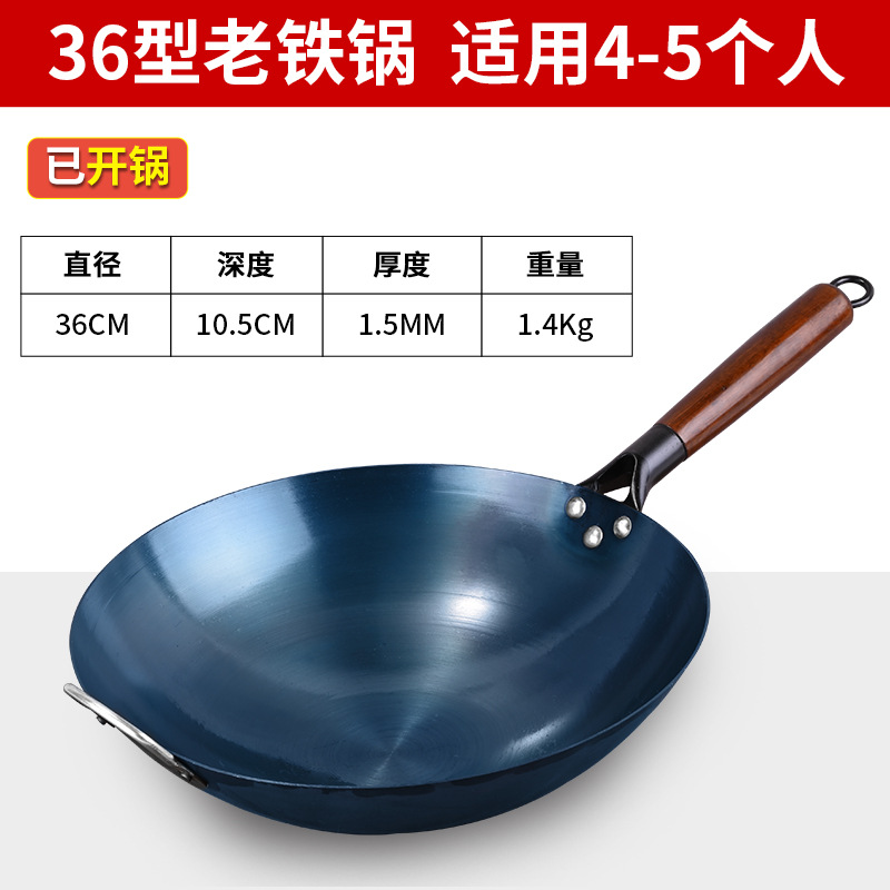 • 세트 36cm [평평한 바닥] 1.8 두꺼운 나무 손잡이 철 냄비 + 주걱 뚜껑 [수동 냄비 열기]]