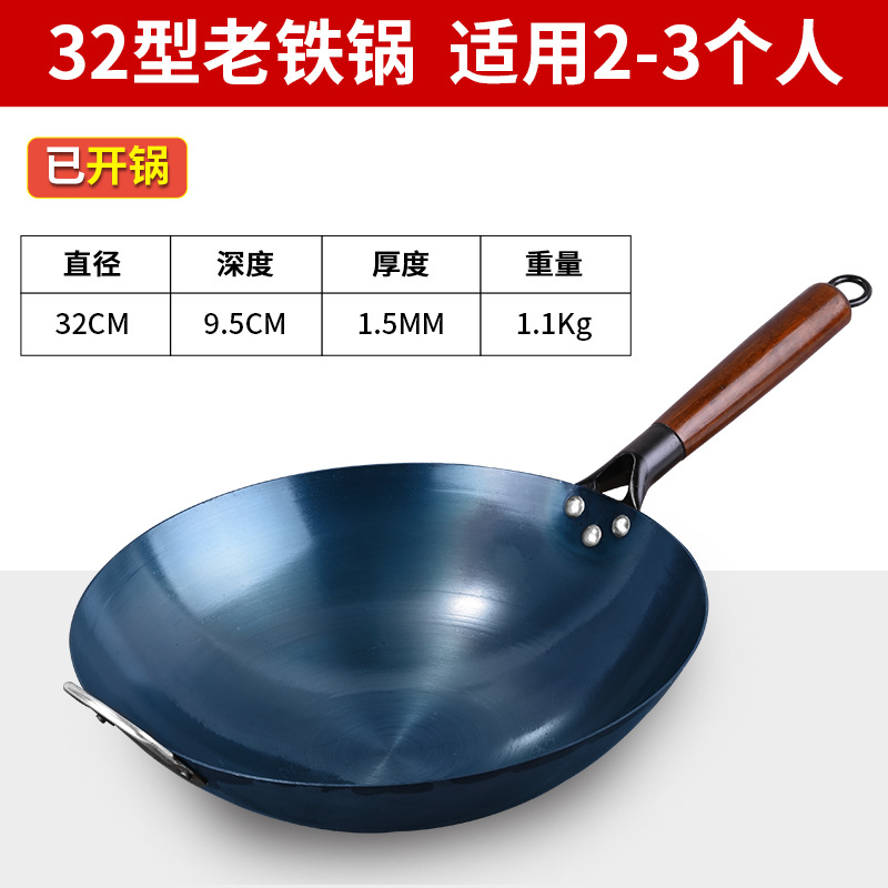 • 세트 32cm [평평한 바닥] 1.8 두꺼운 나무 손잡이 철 냄비 + 주걱 뚜껑 [수동 냄비 열기]]