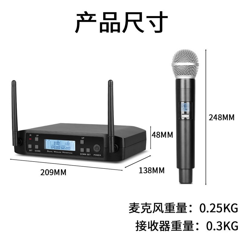 무선 마이크 전문 연설 회의 노래방 공연 결혼식 홈 UHF FM U-세그먼트 간섭 방지 1 대 2