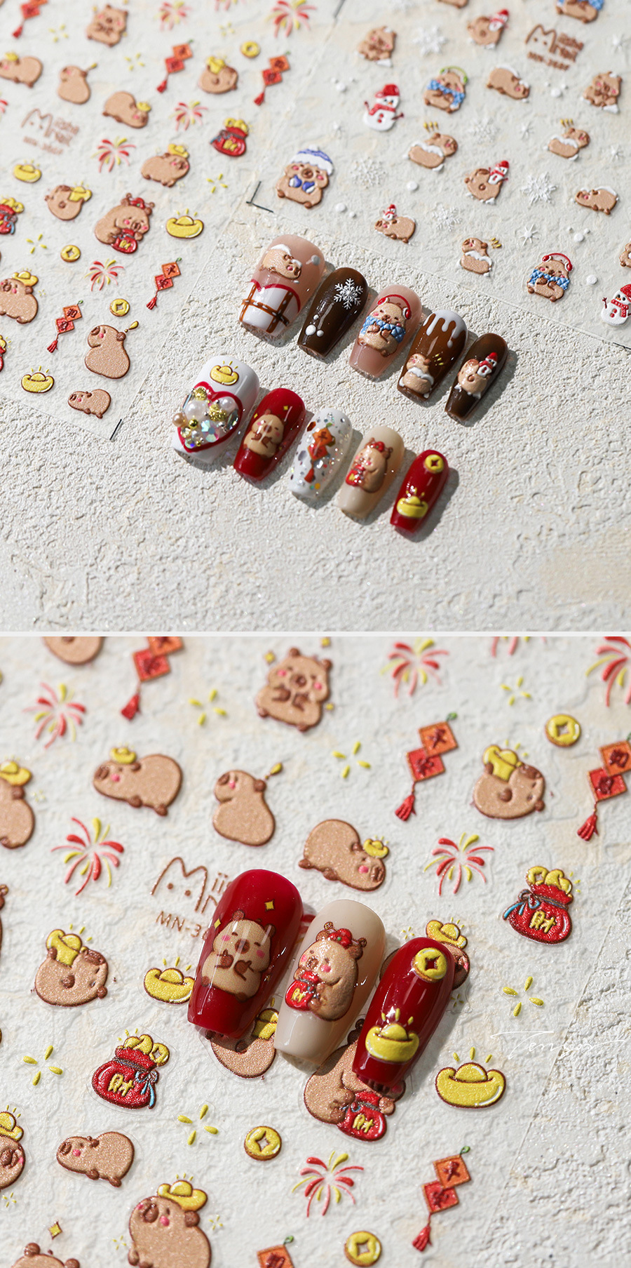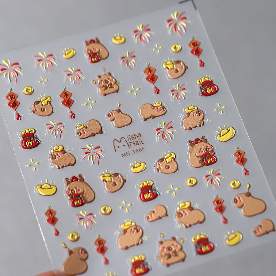 마법의 철 새해 용 구호 네일 스티커 귀여운 젖빛 얇은 투명 3 차원 네일 스티커 MN365