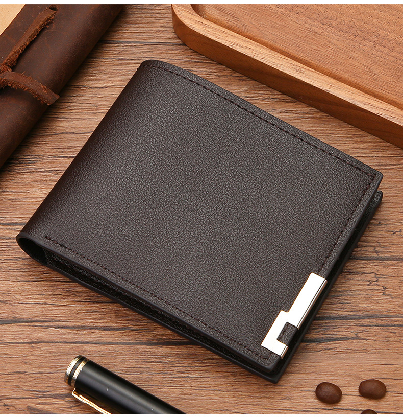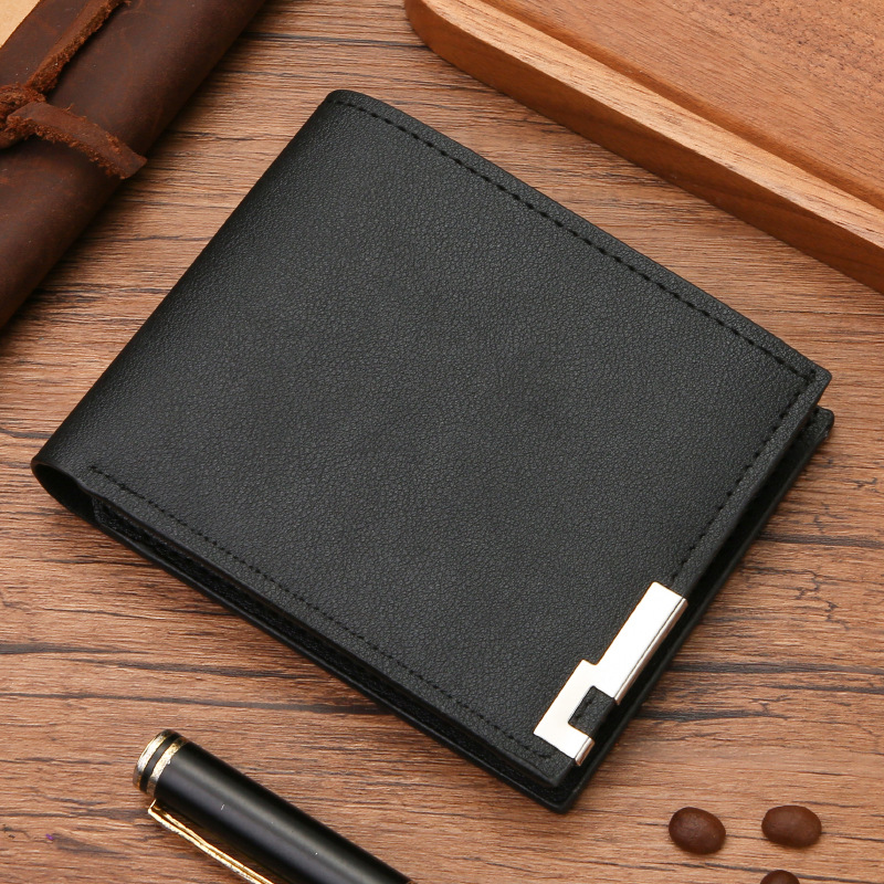 ENDAYCON 남자 짧은 지갑 한국식 아이언 에지 젊은 남성 수평 멀티 카드 지갑 트렌디 카드 홀더