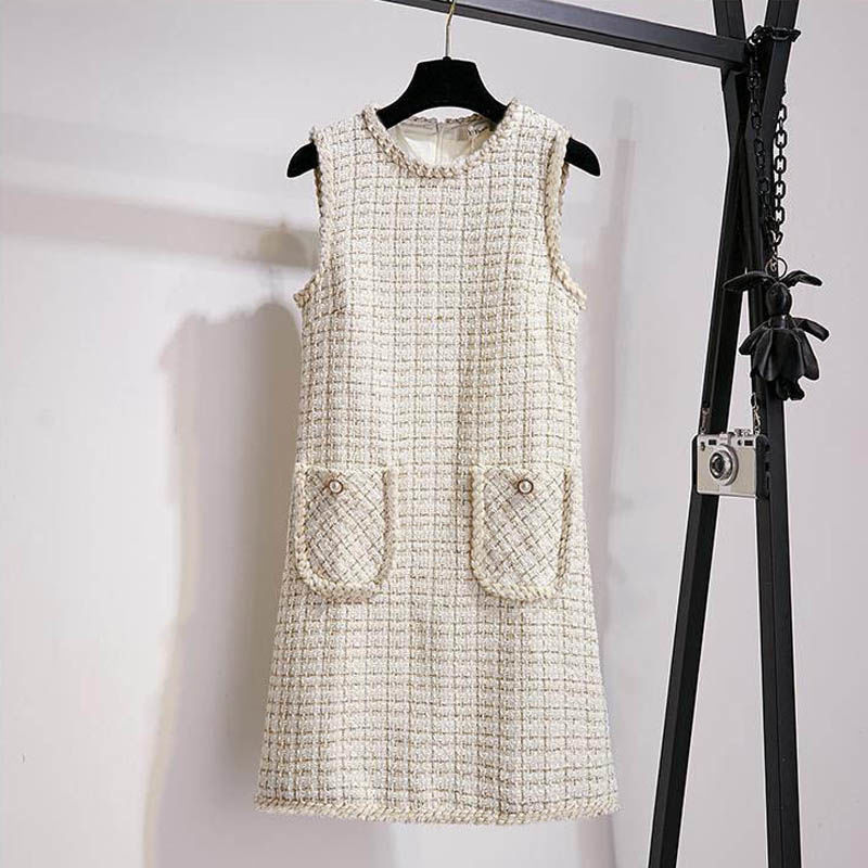 여성을위한 모직 조끼 원피스 2023 새로운 세련된 서양식 샤넬 스타일 바닥 원피스 투피스 세트스토어 가기