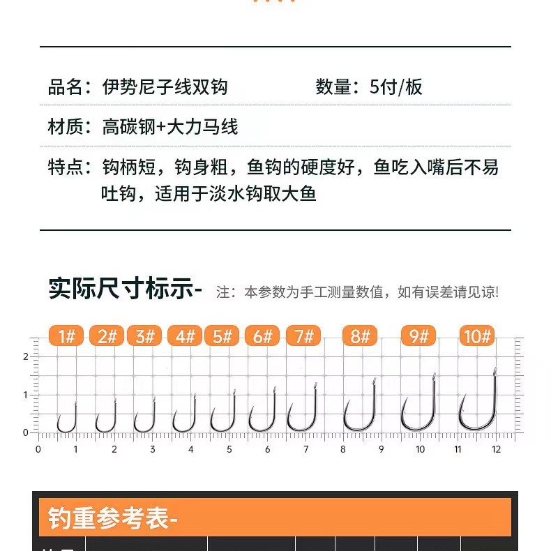Isini Yidou 스레드 더블 후크 강한 말 안티 바이트 스레드 더블 후크 손으로 묶인 스레드 더블 후크 세트 피쉬 훅스토어 가기